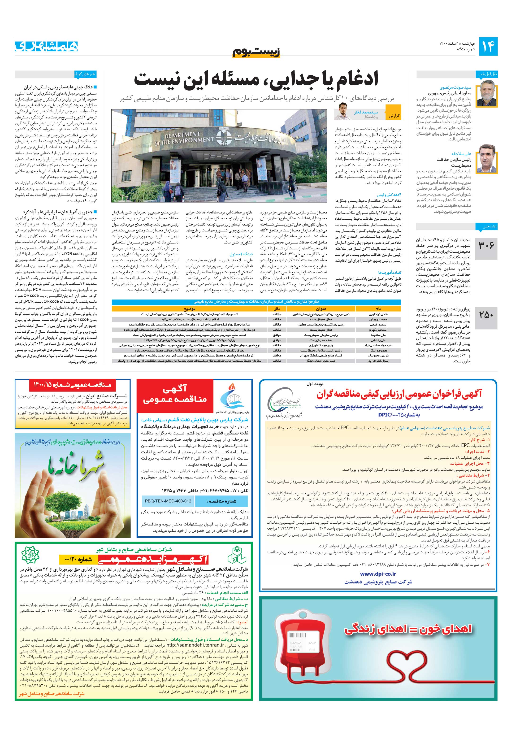 بررسی دیدگاههای 10کارشناس درباره ادغام یا جداماندن سازمان حفاظت محیطزیست و سازمان منابع طبیعی کشور