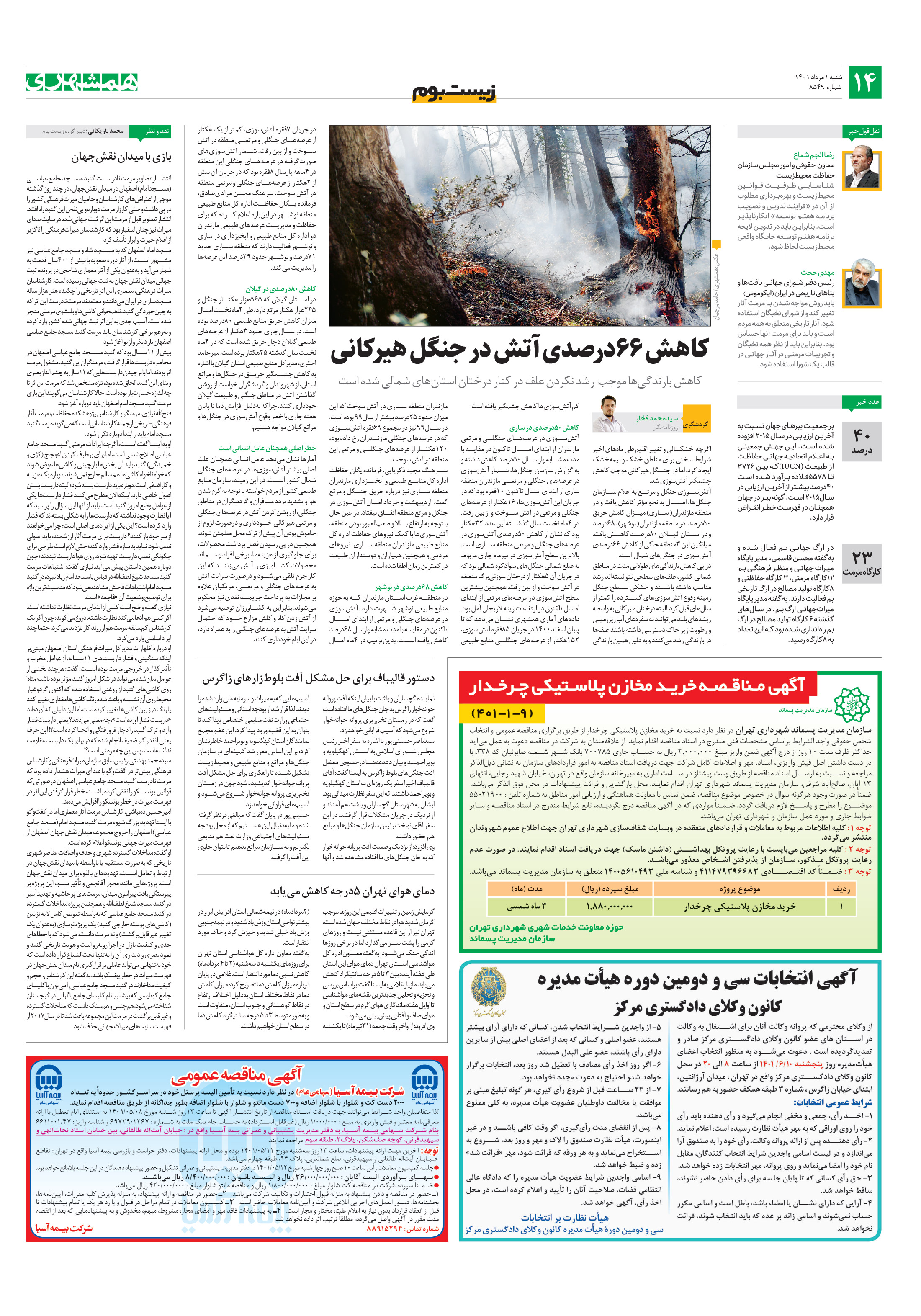 اگرچه خشکسالی و تغییر اقلیم طی ماههای اخیر شرایط سختی برای مناطق خشک و نیمهخشک ایجاد کرد. اما در جنگل هیرکانی موجب کاهش چشمگیر آتشسوزی شد. آتشسوزی جنگل و مرتع به اعلام سازمان جنگلها، امسال به نحو مؤثر کاهش یافت.