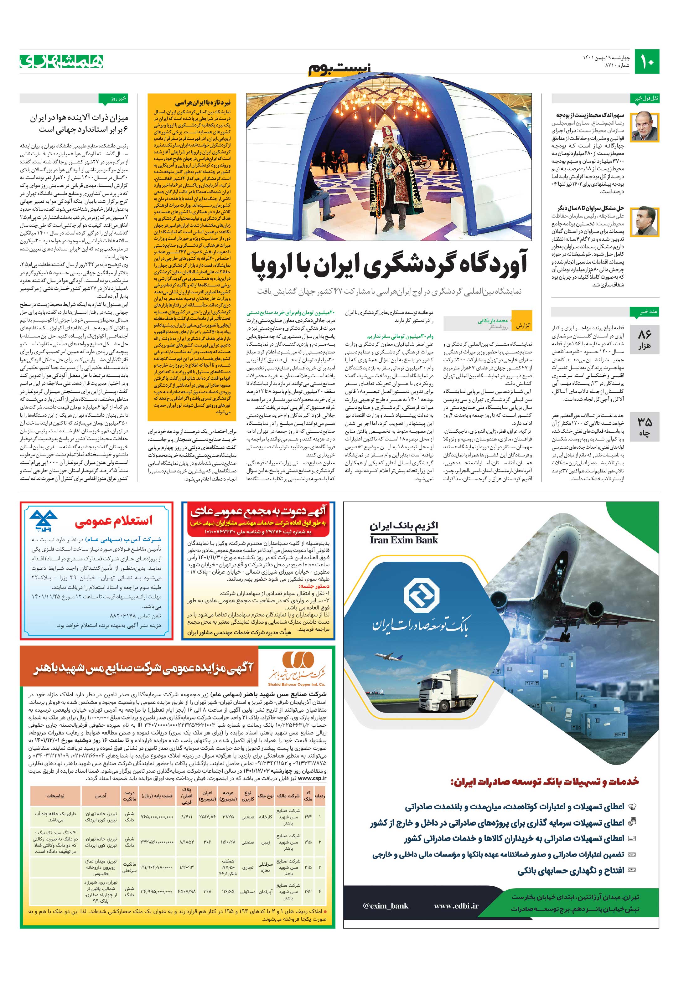 نمایشگاه مشترک بینالمللی گردشگری و صنایعدستی، با حضور وزیر میراث فرهنگی و سفرای خارجی در تهران و مشارکت 200شرکت از 47کشور جهان در فضای 67هزار مترمربع صبح دیروز در نمایشگاه بینالمللی تهران گشایش یافت.