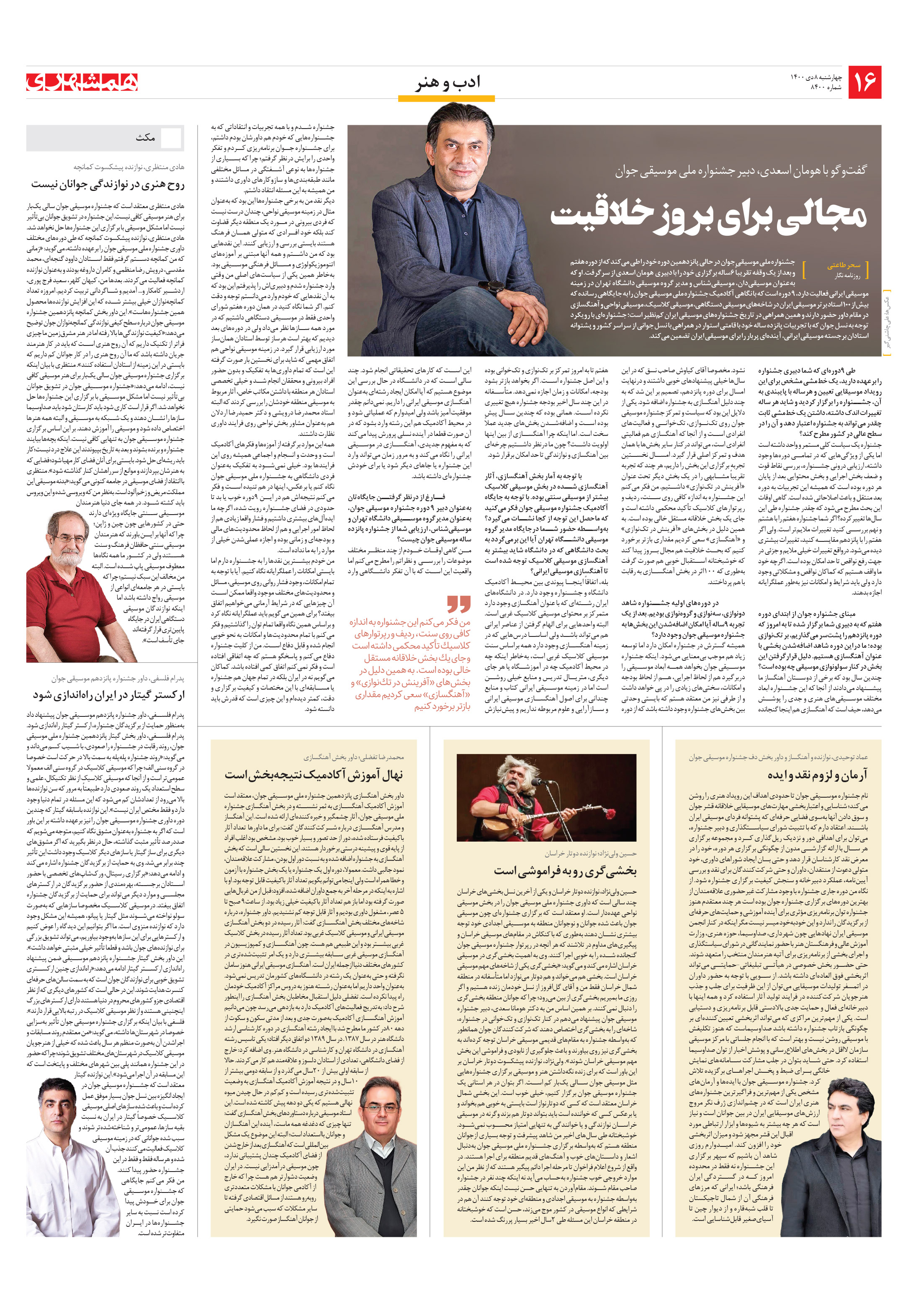 هادی منتظری معتقد است که جشنواره موسیقی جوان سالی یکبار برای هنر موسیقی کافی نیست. این جشنواره در تشویق جوانان بیتأثیر نیست اما مشکل موسیقی با برگزاری این جشنوارهها حل نخواهد شد. هادی منتظری، نوازنده پیشکسوت کمانچه که طی دورههای مختلف داوری جشنواره ملی موسیقی جوان را برعهده داشته