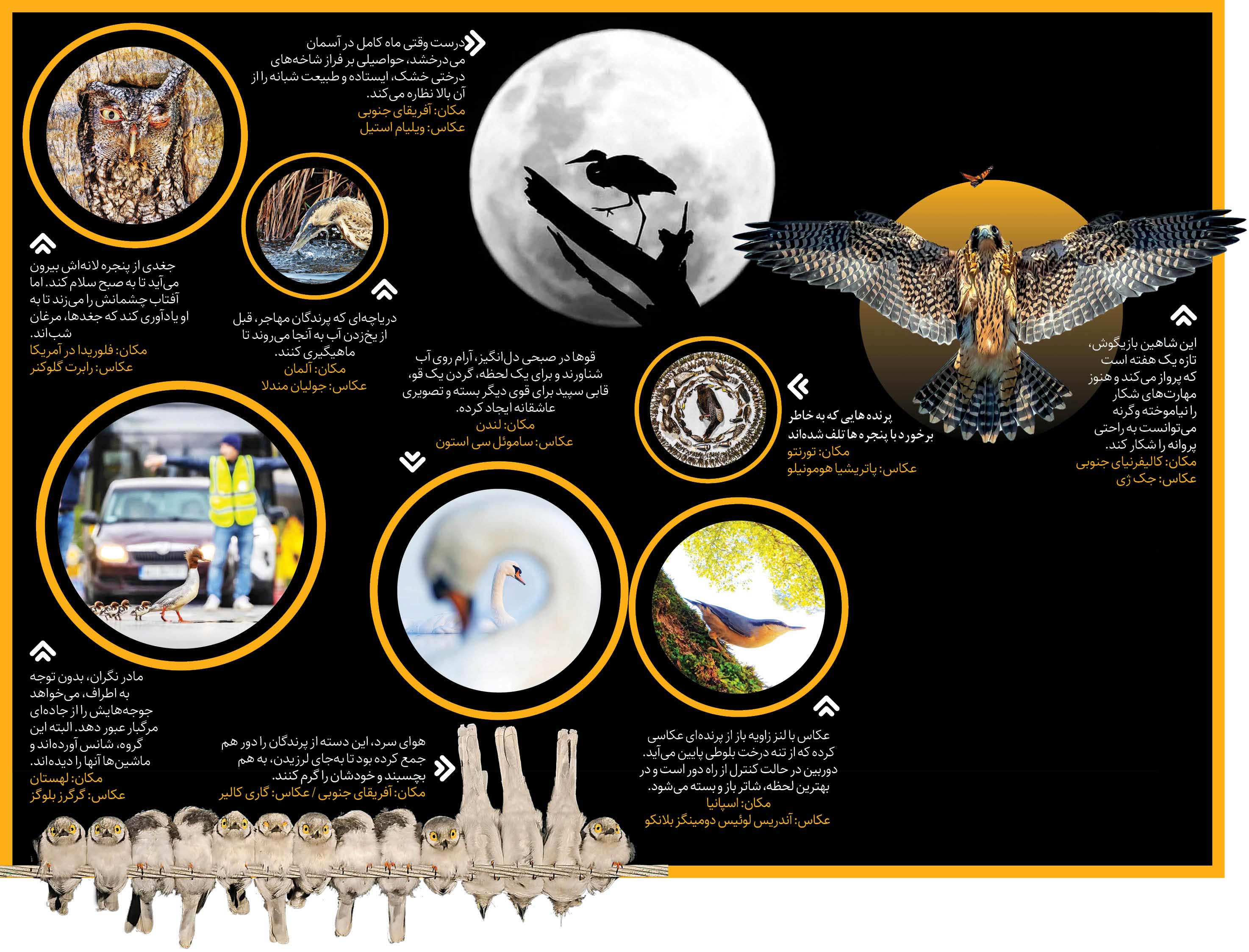 امسال هم مثل گذشته مسابقهای با عنوان «عکاس پرنده سال» برگزار شد. مسابقهای جهانی که هر ساله علاوه بر جمعکردن آثار هنرمندان با استعداد، بهانهای است برای حمایت از پرندگان، این ساکنان آسمانی زمین. امسال 23هزار عکس از هنرمندان با موضوع پرنده، در این مسابقه شرکت کردند و به تازگی برگزیدگان آن معرفی شدند.