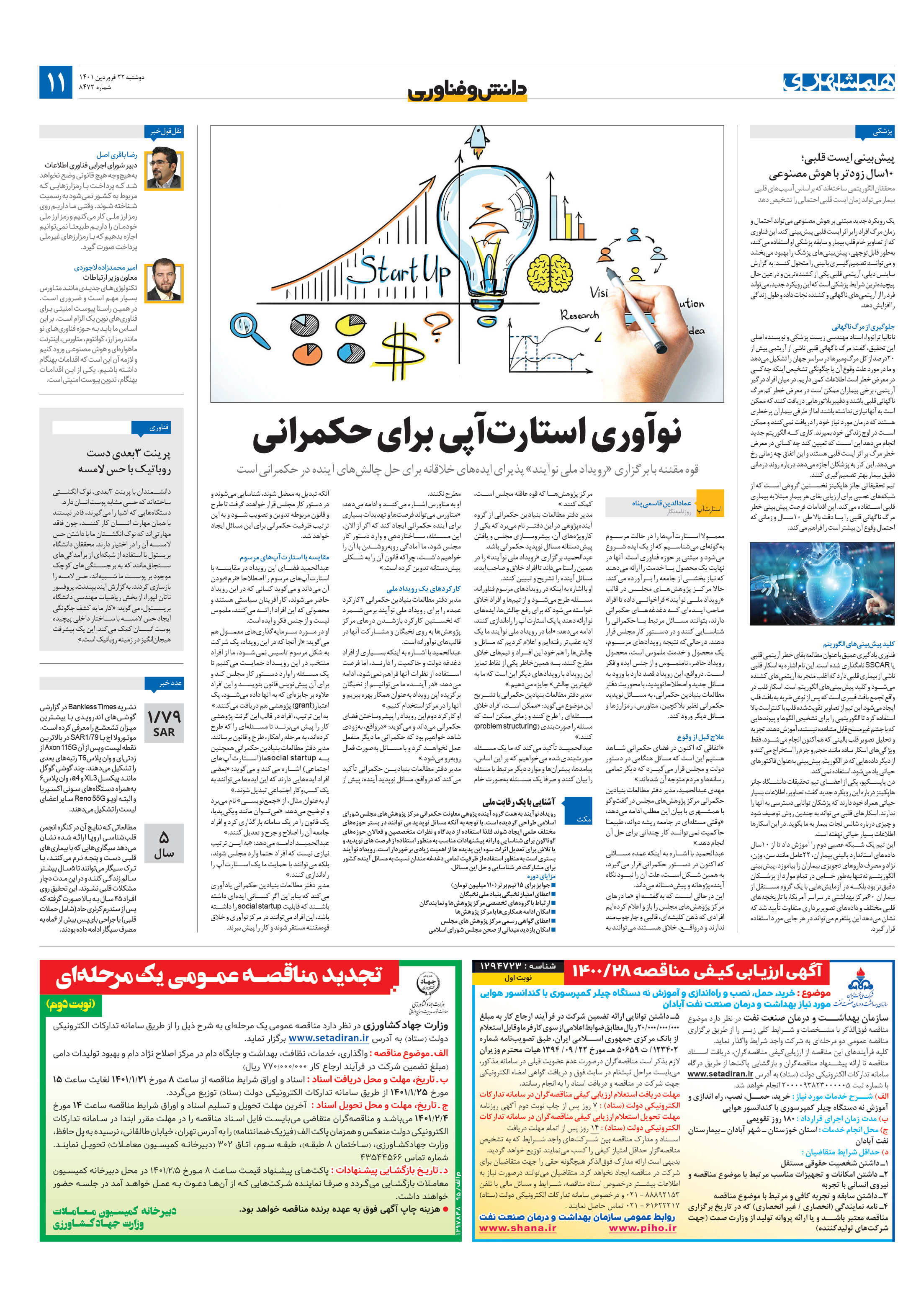 معمولا استارتآپها را در حالت مرسوم بهگونهای میشناسیم که از یک ایده شروع میشود و مبتنی بر حوزه فناوری است. آنها در نهایت یک محصول یا خدمت را ارائه میدهند که نیاز بخشی از جامعه را برآورده میکند. حالا مرکز پژوهشهای مجلس در قالب «رویداد ملی نوآیند» فراخوانی داده تا افراد صاحب ایدهای که دغدغههای حکمرانی دارند، بتوانند مسائل مرتبط با حکمرانی را شناسایی کنند و در دستور کار مجلس قرار دهند.