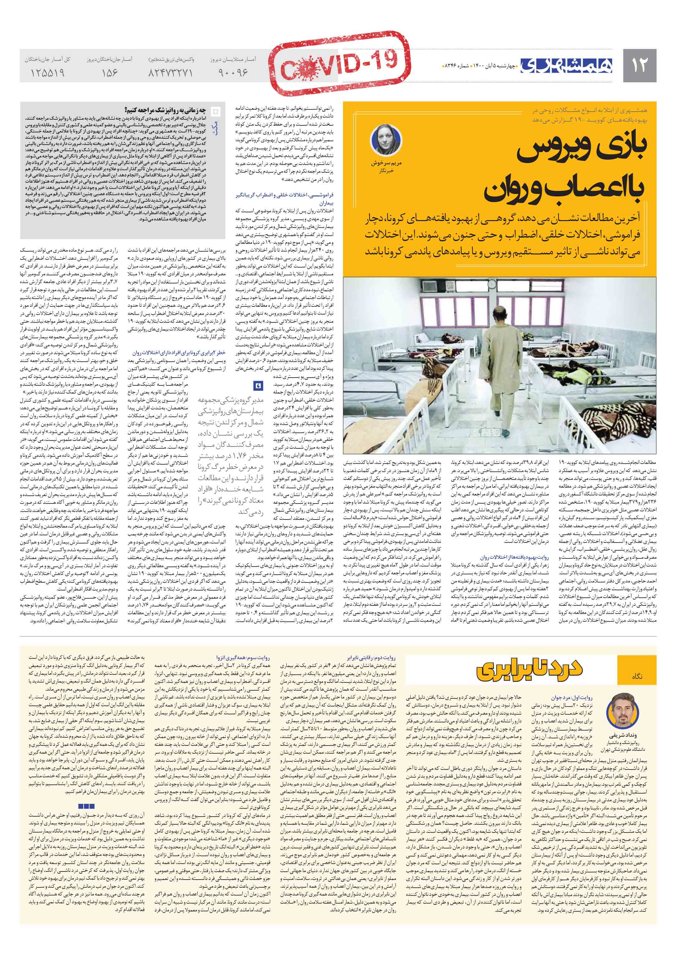 آخرین مطالعات نشان می دهد، گروهی از بهبود یافتههای کرونا، دچار فراموشی، اختلالات خلقی، اضطراب و حتی جنون میشوند. این اختلالات میتواند ناشی از تاثیر مستقیم ویروس و یا پیامدهای پاندمی کرونا باشد
