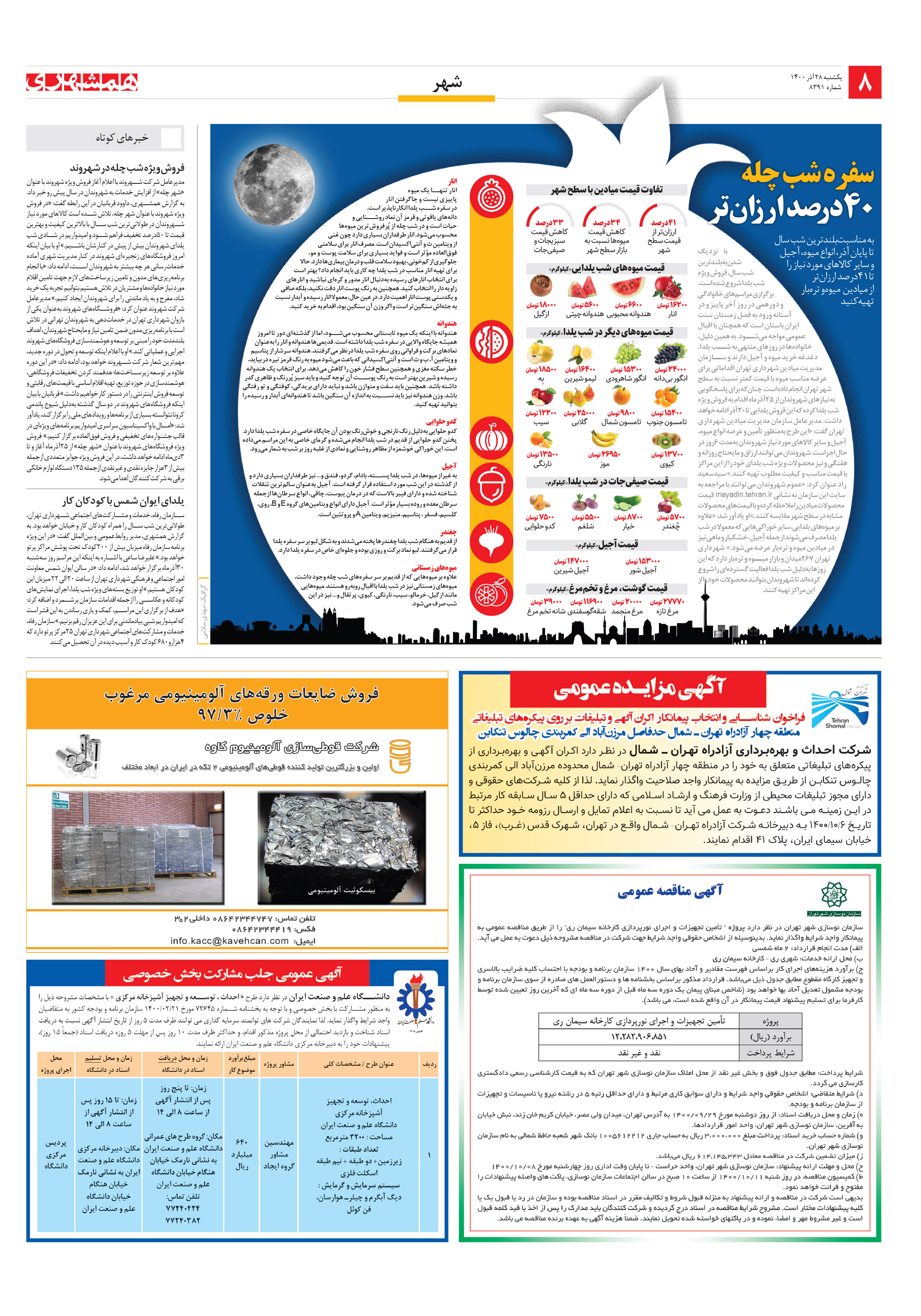 خبرهای کوتاه/فروش ویژه شب چله در شهروند