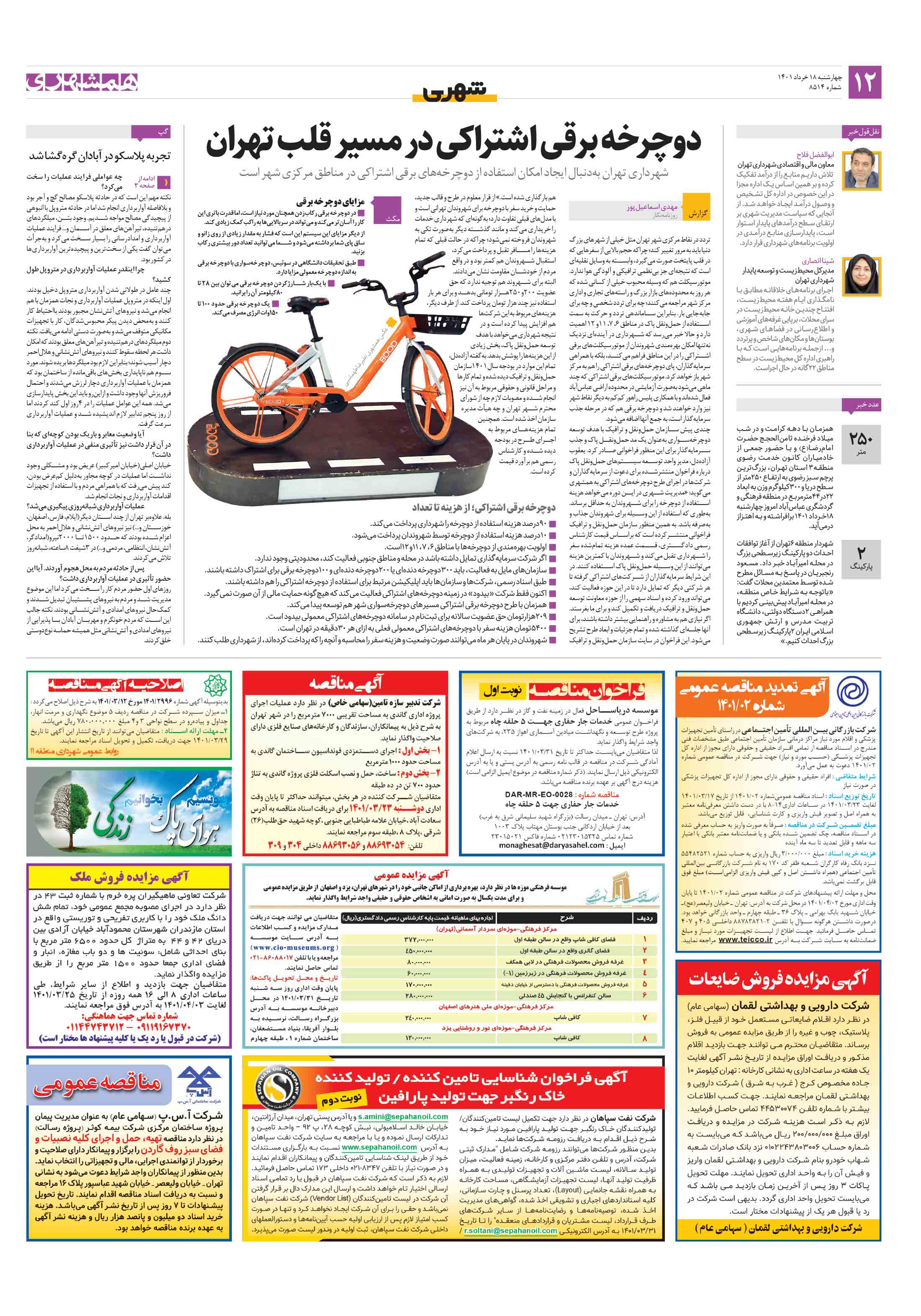 دوچرخه برقی اشتراکی در مسیر قلب تهران
