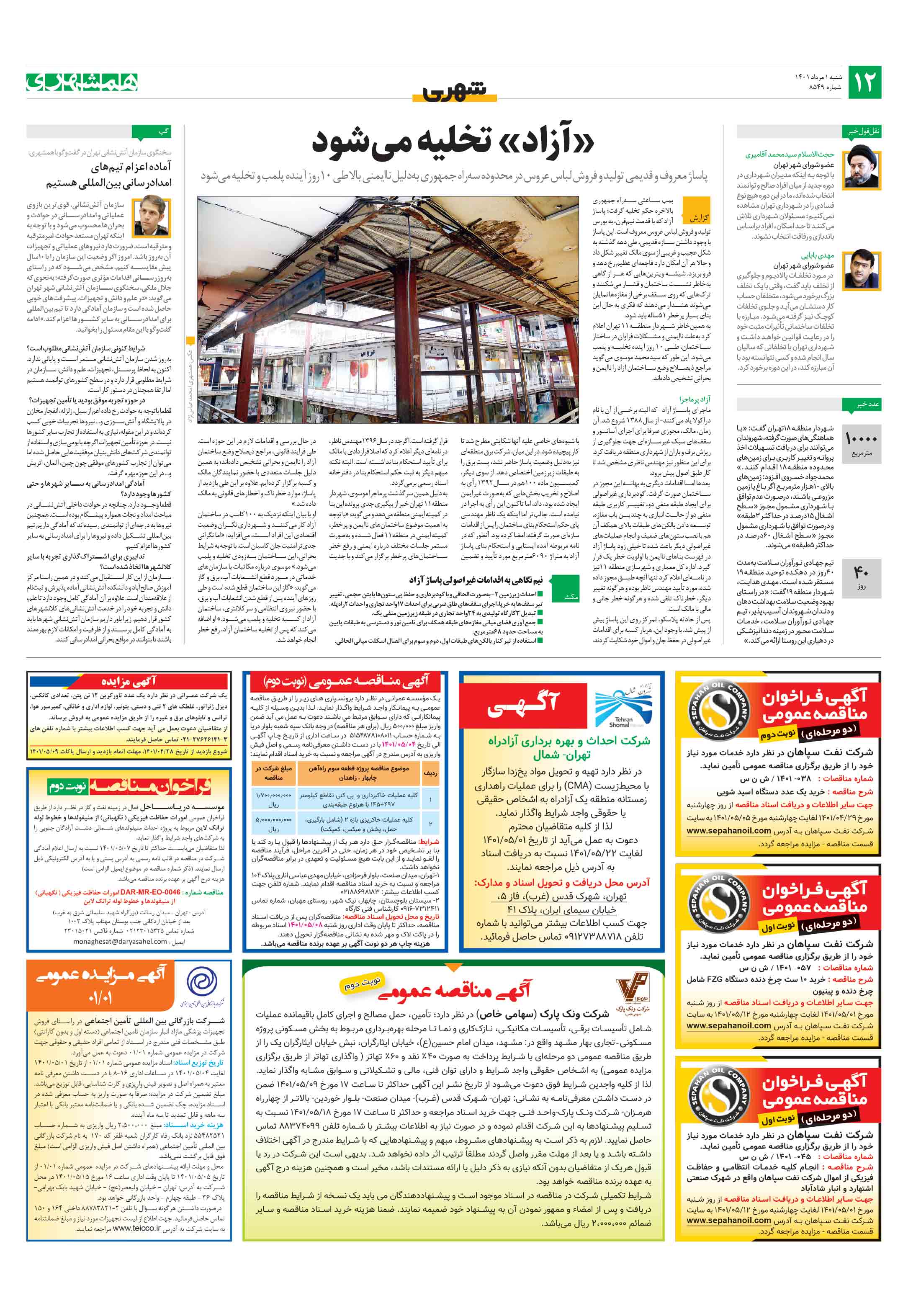 بمب ساعتی سهراه جمهوری بالاخره حکم تخلیه گرفت؛ پاساژ آزاد که با قدمت نیمقرن، به بورس تولید و فروش لباس عروس معروف است. این پاساژ با وجود داشتن سازه قدیمی، طی دهه گذشته به شکل عجیب و غریبی از سوی مالک تغییر شکل داد و حالا هر آن امکان دارد فاجعهای عظیم رخ دهد و فرو بریزد.