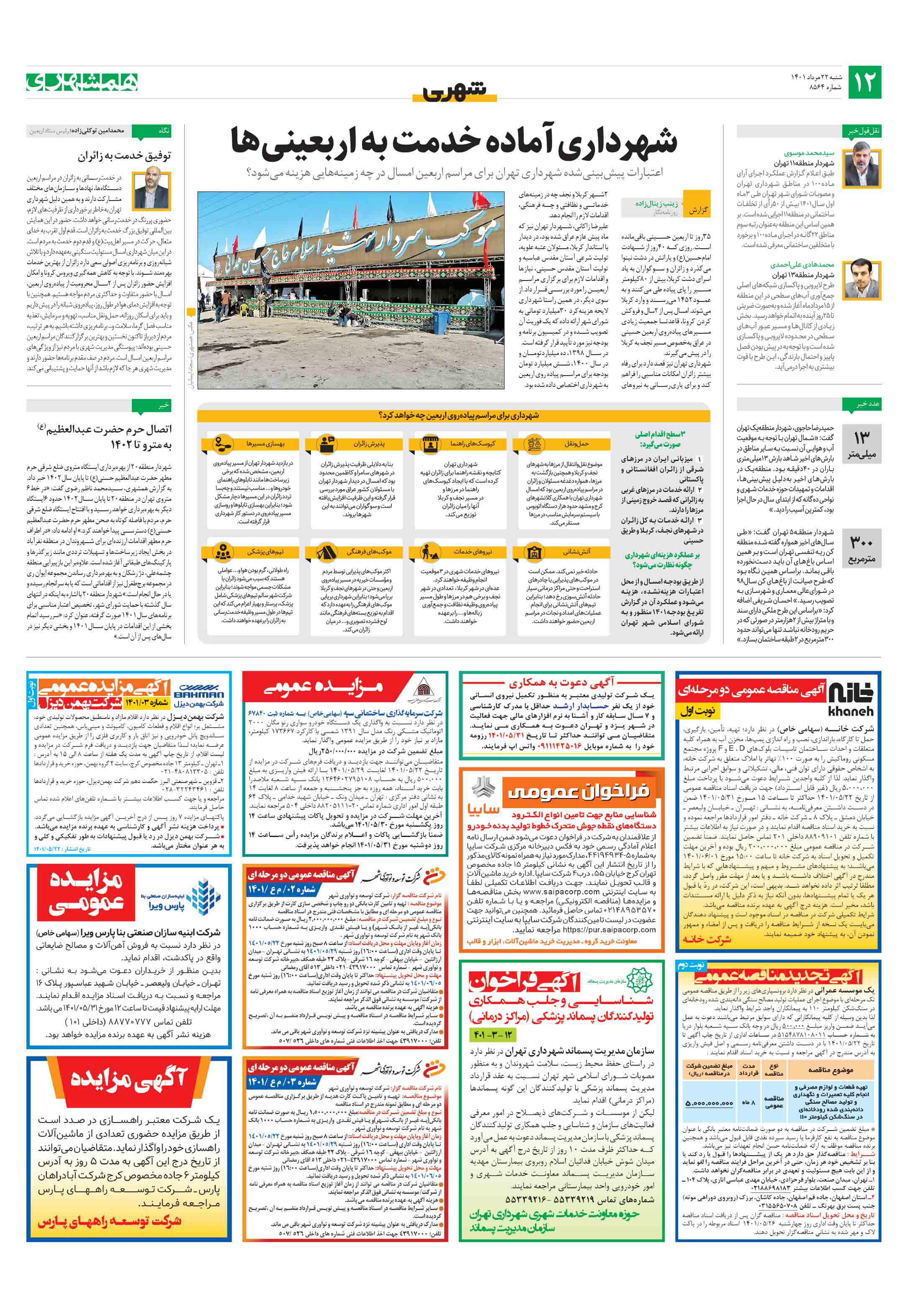 اعتبارات پیشبینیشده شهرداری تهران برای مراسم اربعین امسال در چه زمینههایی هزینه میشود؟