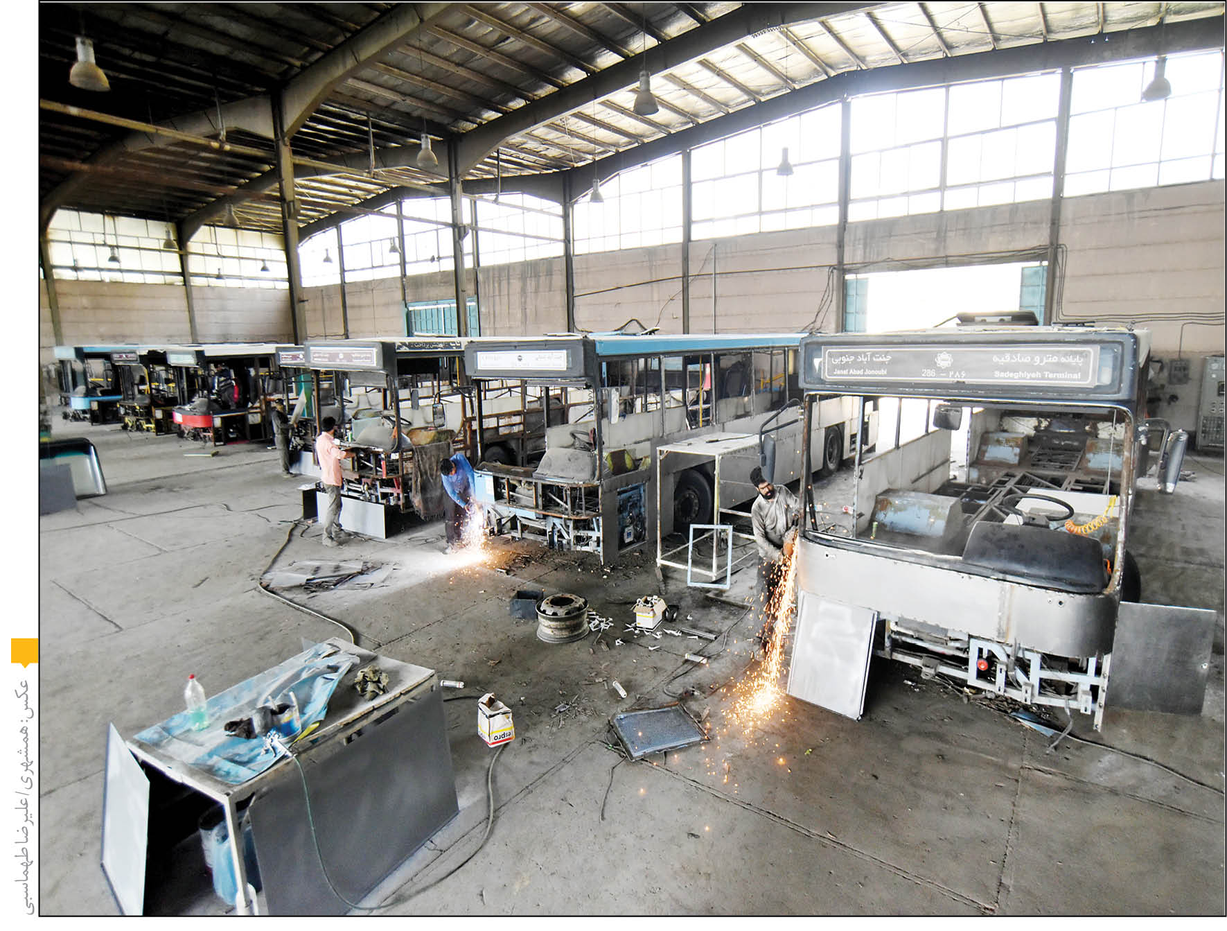 اتوبوسهای کهنه و زهوار دررفته وارد میشوند و پس از آنکه مورد ارزیابی کارشناسان قرار میگیرند، به خط مخصوصی برای بازسازی اساسی انتقال مییابند.