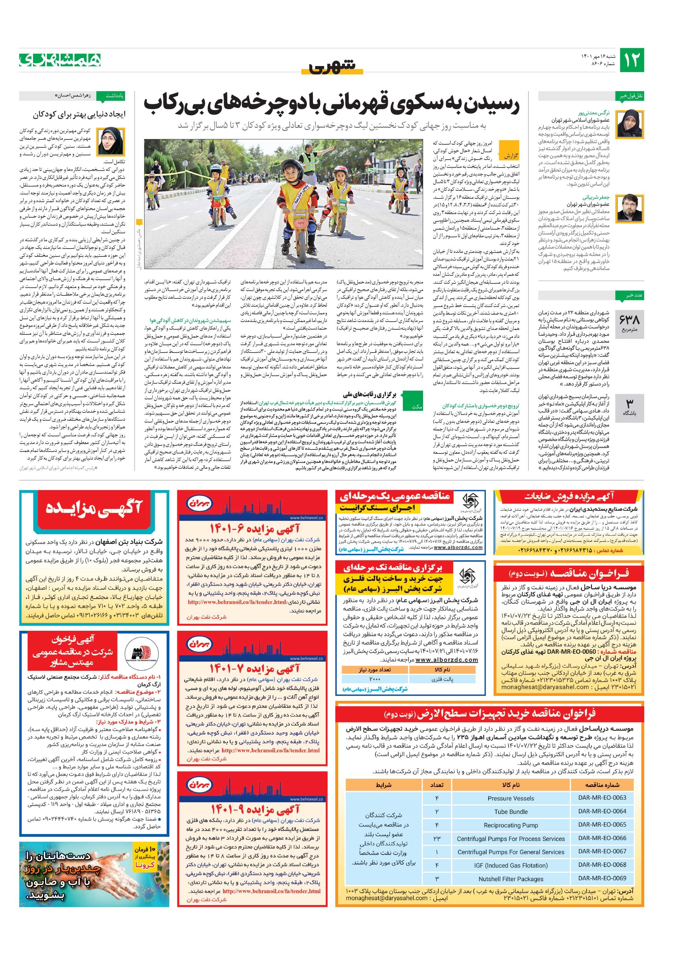 امروز روز جهانی کودک است که امسال شعار «حال خوش کودکی، رنگ خوش زندگی» برای آن انتخاب شده، اما در پایتخت به مناسبت این روز اتفاق ورزشی جالب و جدیدی رقم خورد و نخستین لیگ دوچرخهسواری تعادلی ویژه کودکان 3 تا 5سال با شعار «دوچرخه، زندگی، سلامت کودکان» در بوستان آموزش ترافیک منطقه16 برگزار شد.