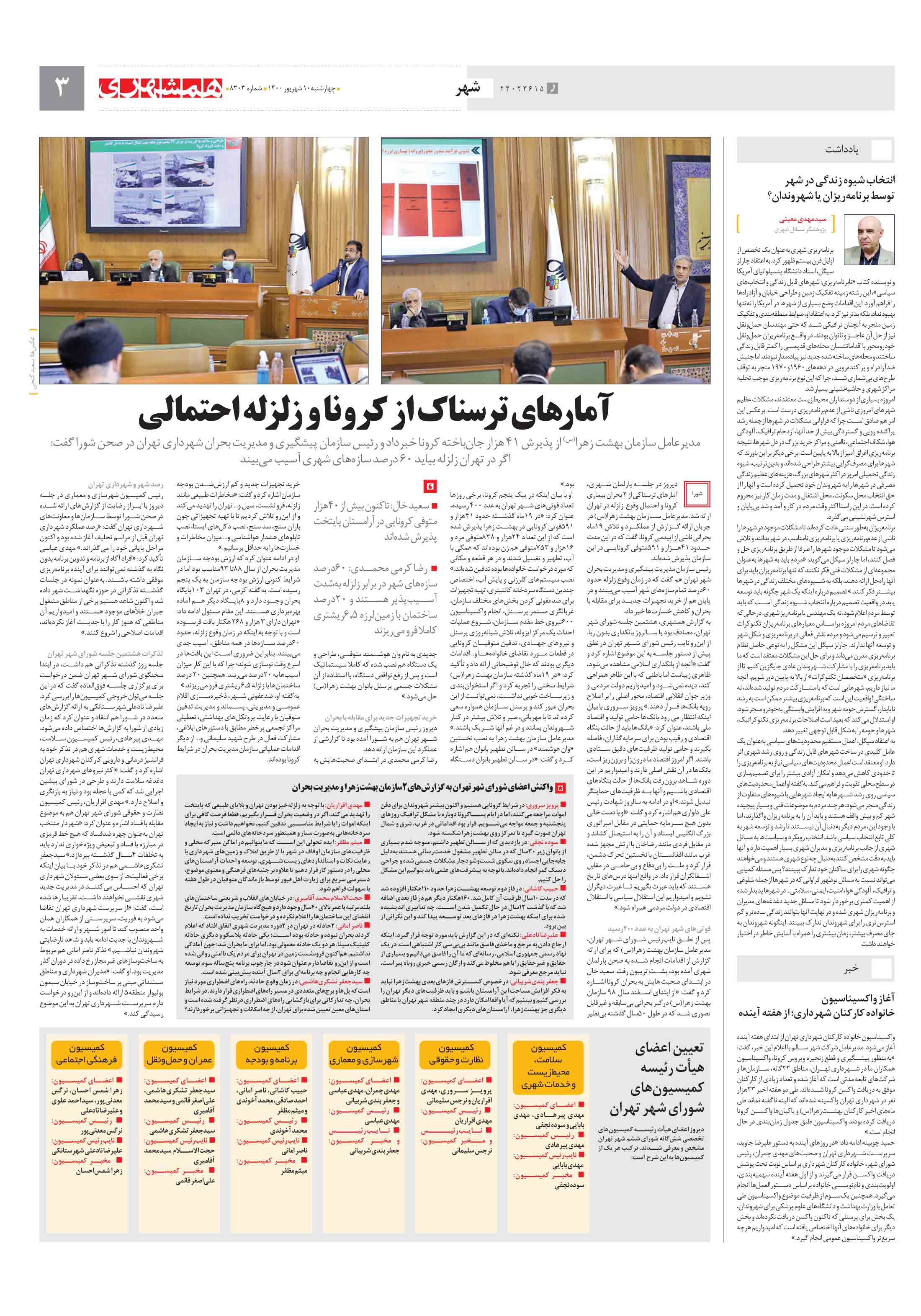 دیروز در جلسه پارلمان شهری، آمارهای ترسناکی از 2 بحران بیماری کرونا و احتمال وقوع زلزله در تهران ارائه شد.