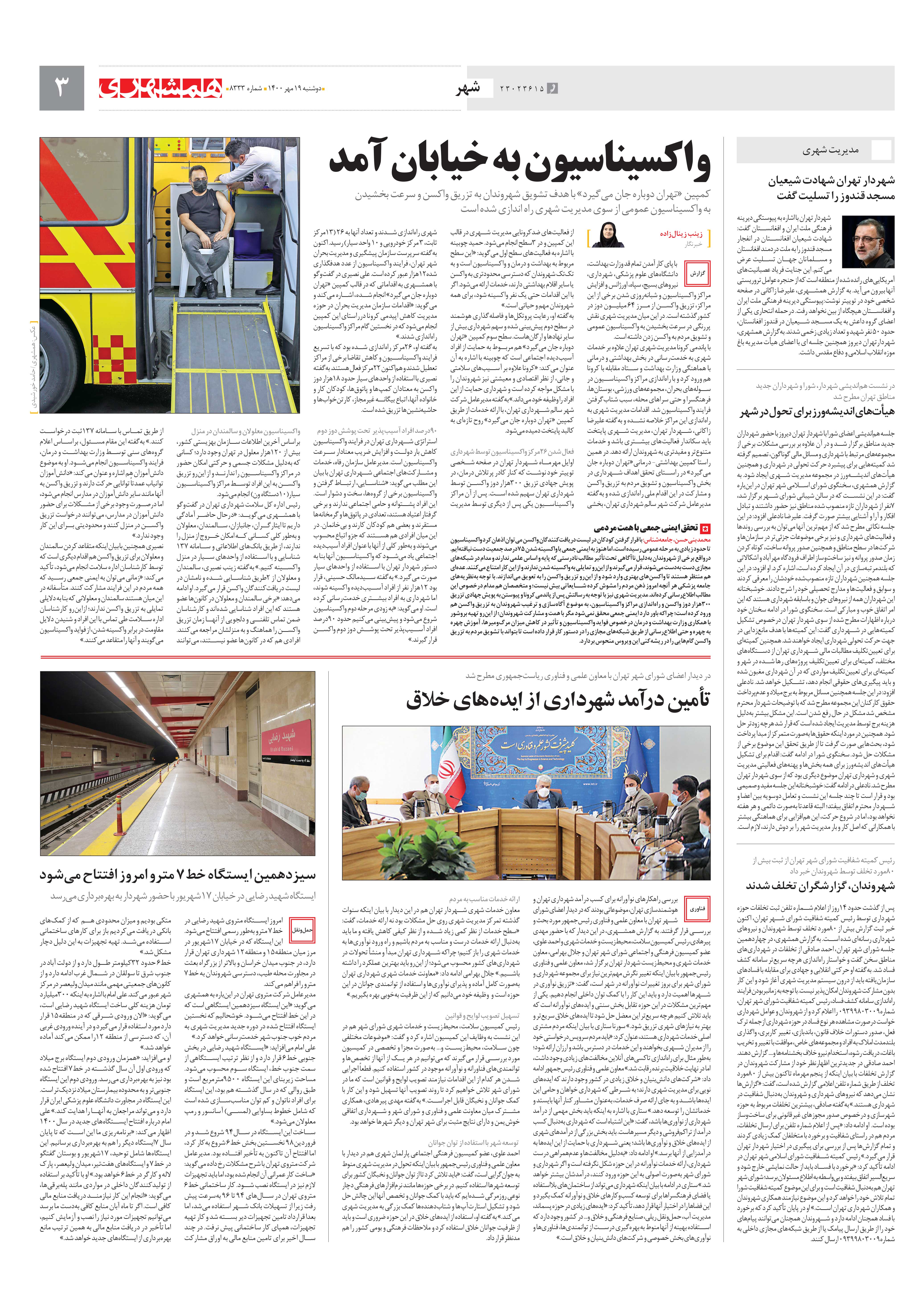 کمپین «تهران دوباره جان میگیرد» با هدف تشویق شهروندان به تزریق واکسن و سرعت بخشیدن به واکسیناسیون عمومی از سوی مدیریت شهری راه اندازی شده است