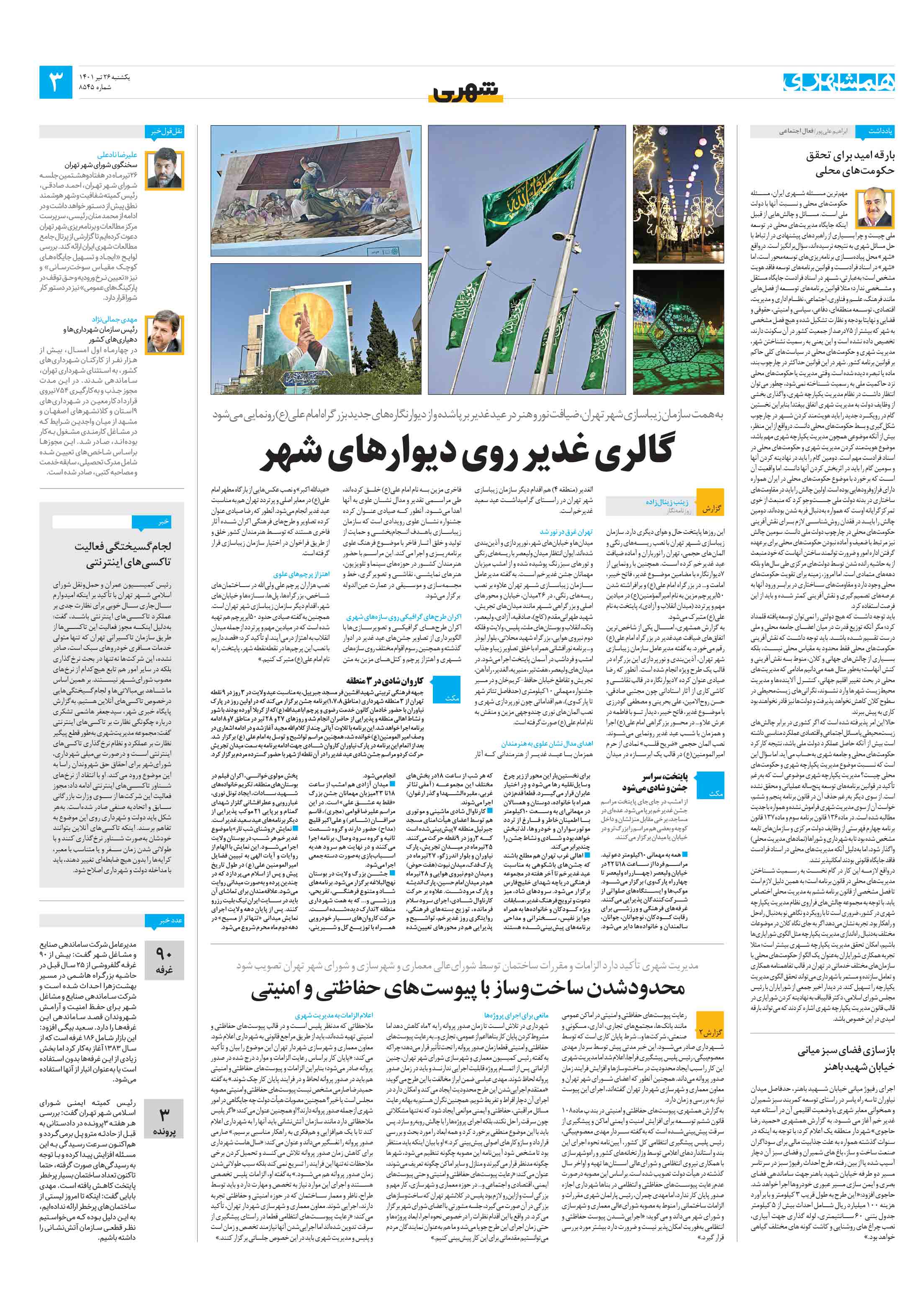 این روزها پایتخت حال و هوای دیگری دارد. سازمان زیباسازی شهر تهران با نصب ریسههای رنگی و المانهای حجمی، تهران را نورباران و آماده ضیافت عید غدیرخم کرده است. همچنین با رونمایی از 7دیوارنگاره با مضامین موضوع غدیر، فاتح خیبر، امامت و... در بزرگراه امام علی ع و برافراشته شدن 50 ابرپرچم مزین به نام امیرالمؤمنین ع در میادین مهم و پرتردد میدان انقلاب و آزادی، پایتخت به نام علی ع متبرک میشود.