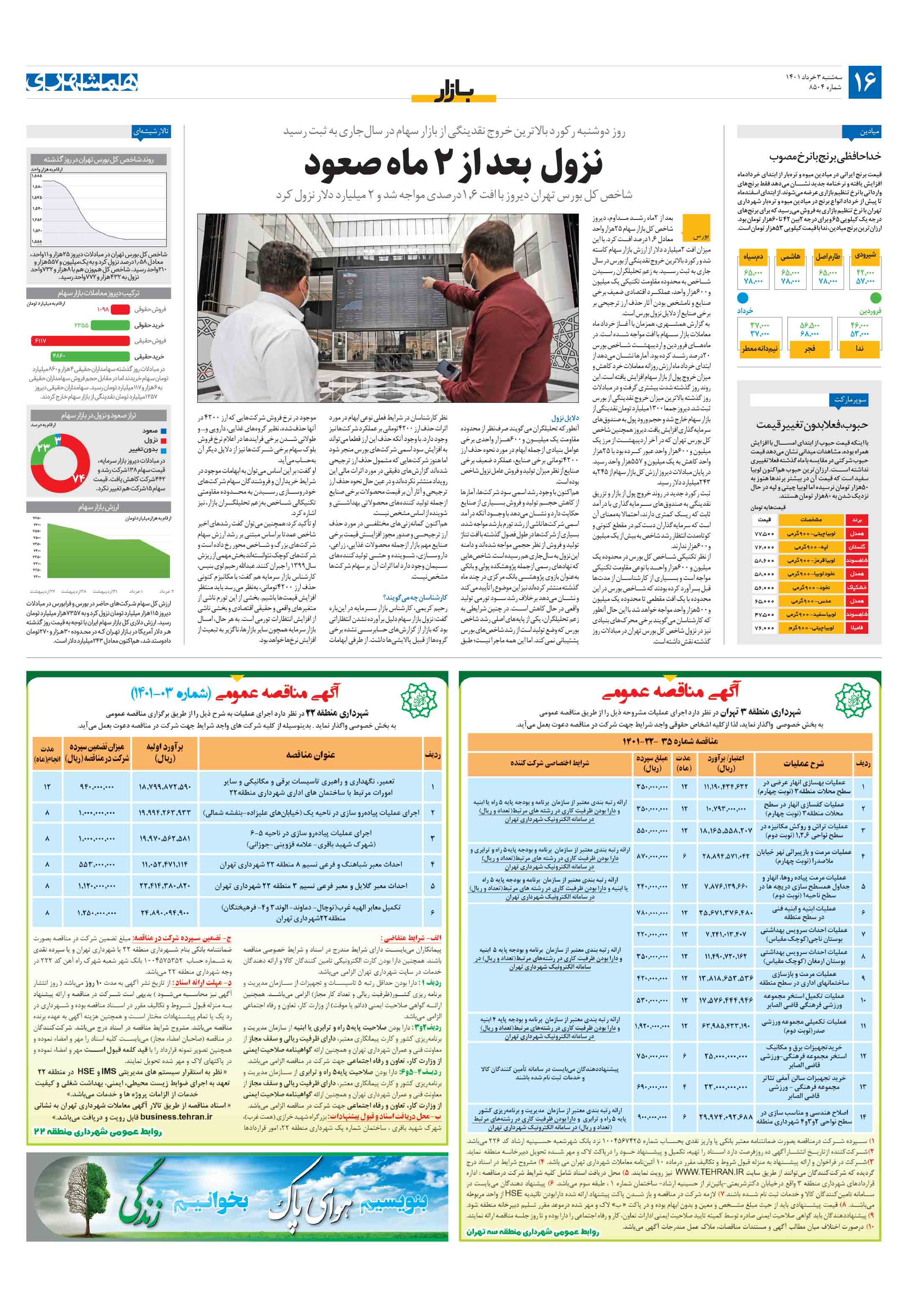 شاخص کل بورس تهران دیروز با افت 1.6درصدی مواجه شد و 2 میلیارد دلار نزول کرد