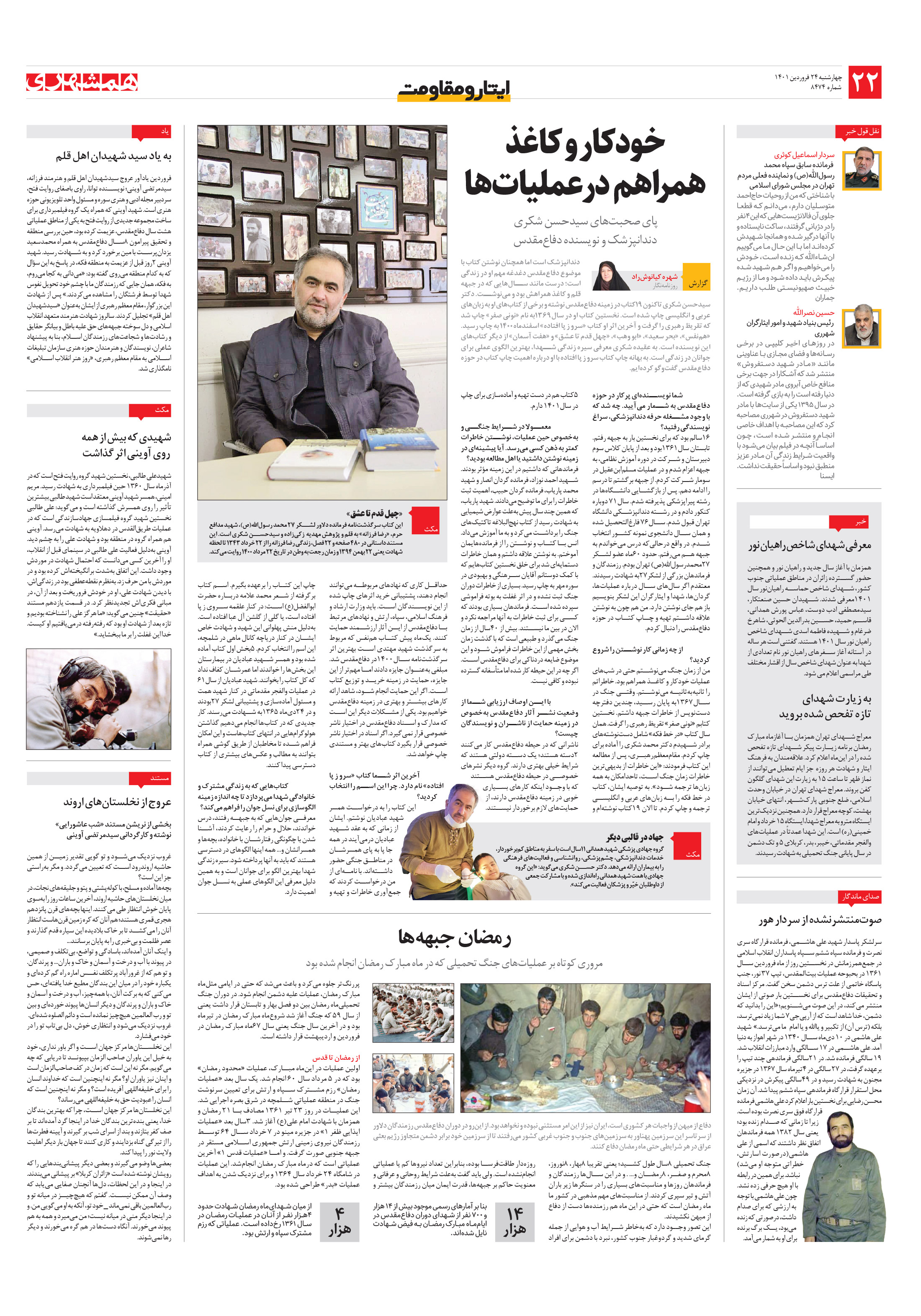 فروردین یادآور عروج سیدشهیدان اهل قلم و هنرمند فرزانه، سیدمرتضی آوینی؛ نویسنده توانا، راوی باصفای روایت فتح، سردبیر مجله ادبی و هنری سوره و مسئول واحد تلویزیونی حوزه هنری است.