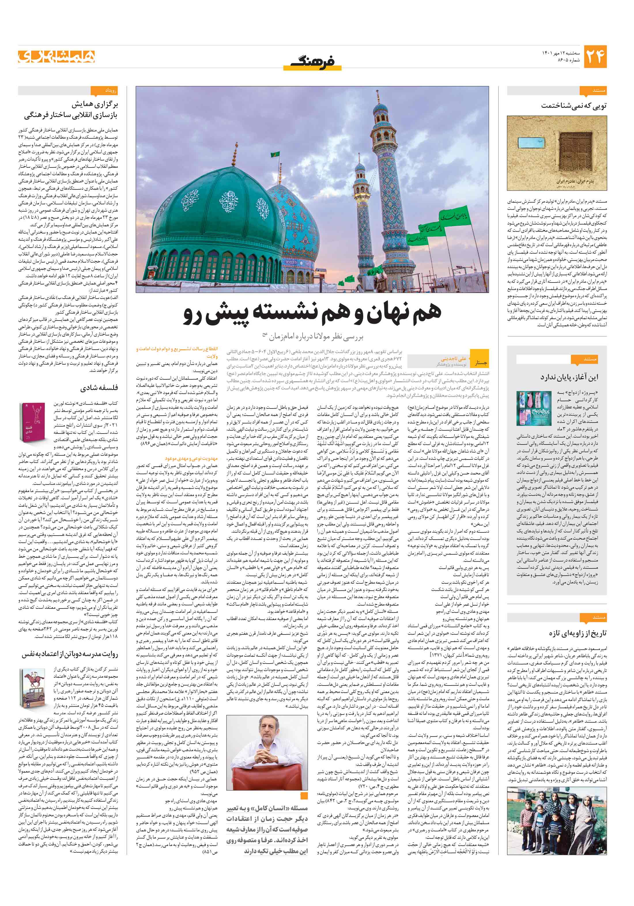براساس تقویم، 8مهر روز بزرگداشت جلالالدین محمد بلخی ۶ ربیعالاول ۶۰۴ – ۵ جمادیالثانی ۶۷۲ هجری قمری معروف به مولوی بود. 13مهر نیز آغاز امامت حضرت ولیعصرعج است.طلب پیشرو که به بررسی نظر مولانا درباره امامزمان عج اختصاص دارد، بنا بر اهمیت این 2مناسبت برای انتشار انتخاب شده است.