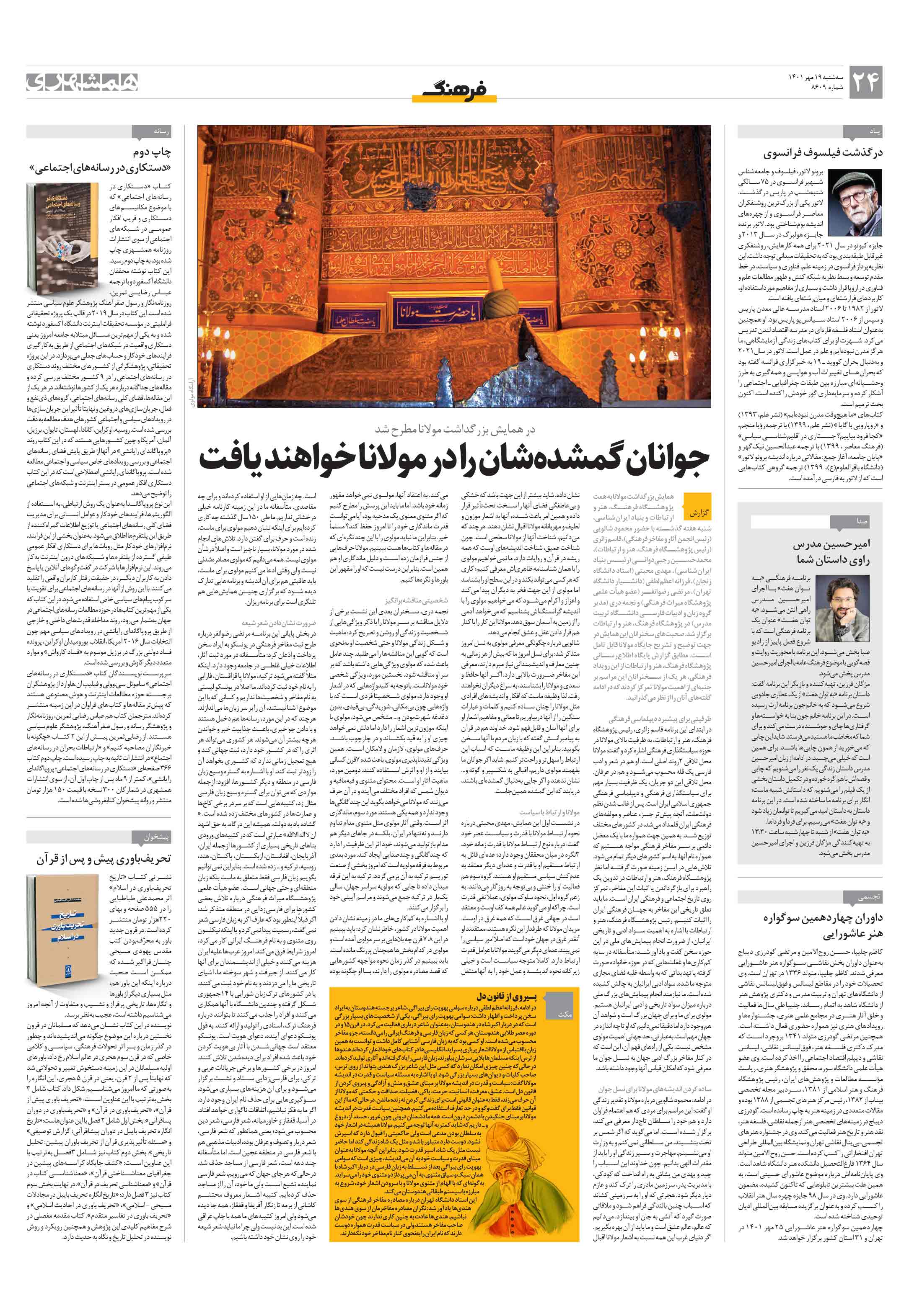 همایش بزرگداشت مولانا به همت پژوهشگاه فرهنگ، هنر و ارتباطات و بنیاد ایرانشناسی، شنبه هفته گذشته با حضور محمود شالویی رئیس انجمن آثار و مفاخر فرهنگی، قاسم زائری رئیس پژوهشگاه فرهنگ، هنر و ارتباطات، محمدحسین رجبیدوانی رئیس بنیاد ایرانشناسی، مهدی محبتی استاد دانشگاه زنجان، فرزانه اعظملطفی دانشیار دانشگاه تهران، مرتضی رضوانفر عضو هیأت علمی پژوهشگاه میراث فرهنگی و نجمه دری مدیر گروه زبان و ادبیات فارسی دانشگاه تربیت مدرس در پژوهشگاه فرهنگ، هنر و ارتباطات برگزار شد.