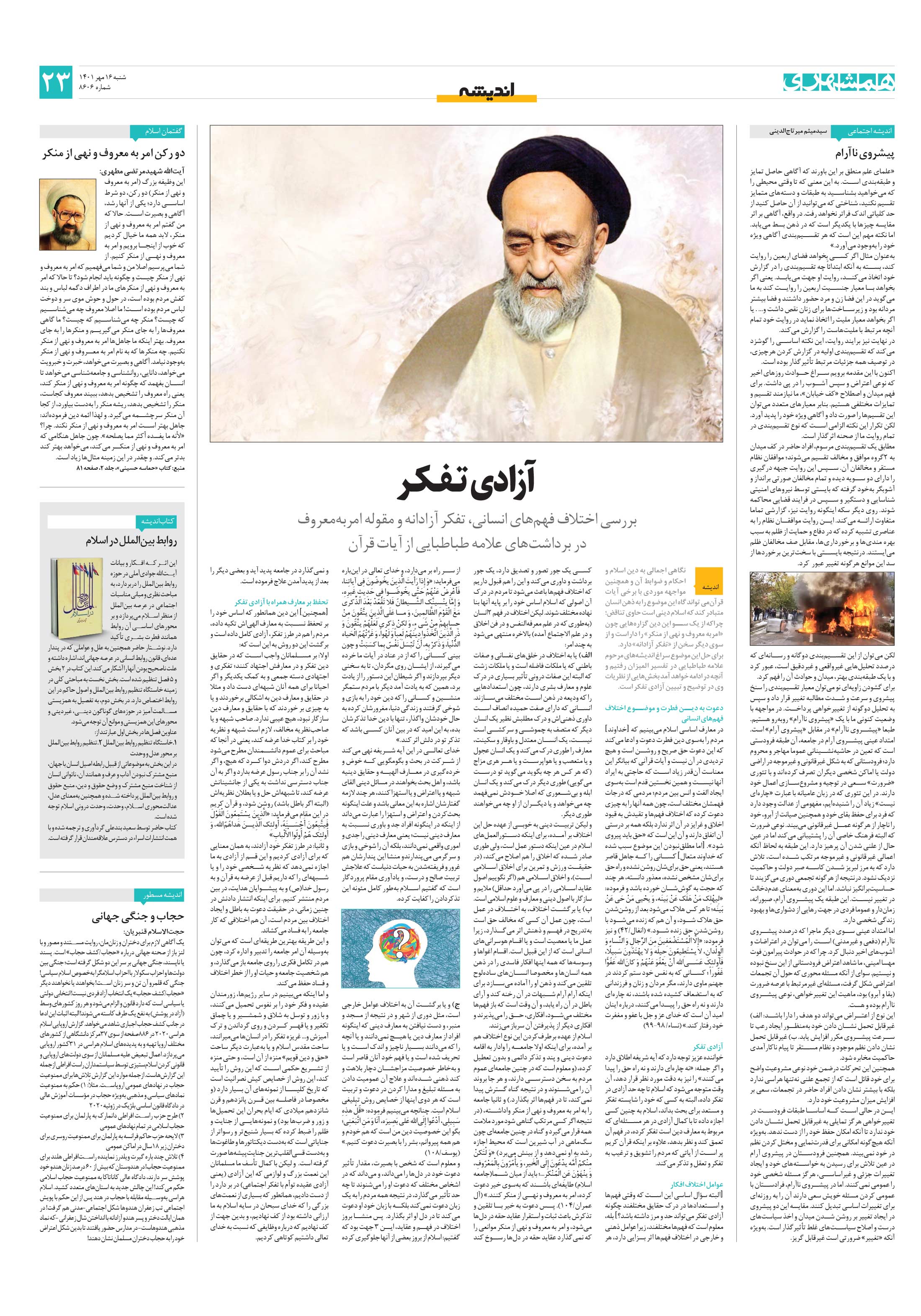 بررسی اختلاف فهمهای انسانی، تفکر آزادانه و مقوله امربهمعروف در برداشتهای علامه طباطبایی از آیات قرآن