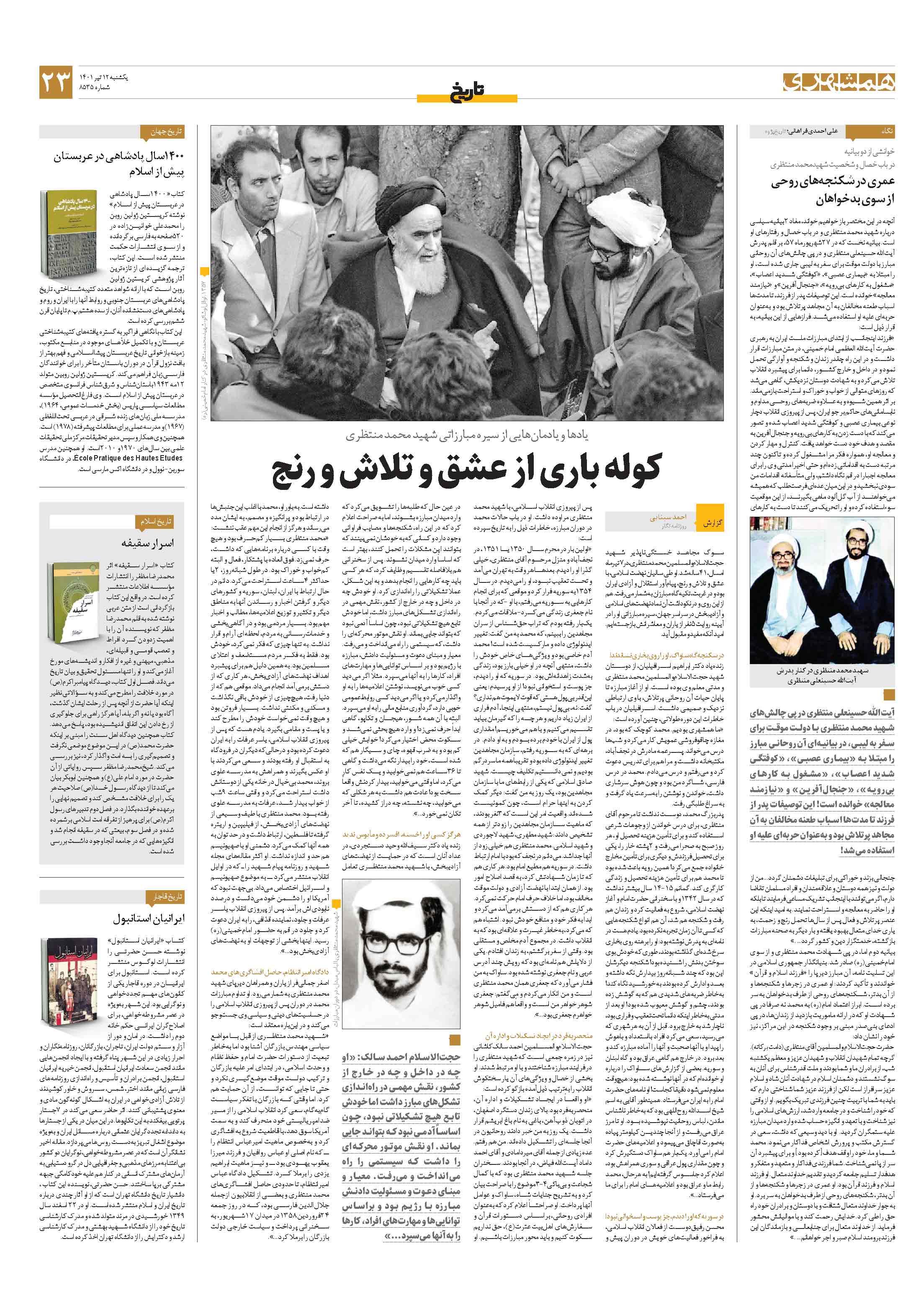 سوگ مجاهد خستگیناپذیر شهید حجتالاسلاموالمسلمین محمد منتظری، در 7تیرماه امسال، 41ساله شد. او طی سالیان نهضت اسلامی، با عشق و تلاش و رنج، پیامآور استقلال و آزادی ایران بود و در غربت، تکیهگاه مبارزان به شمار میرفت.