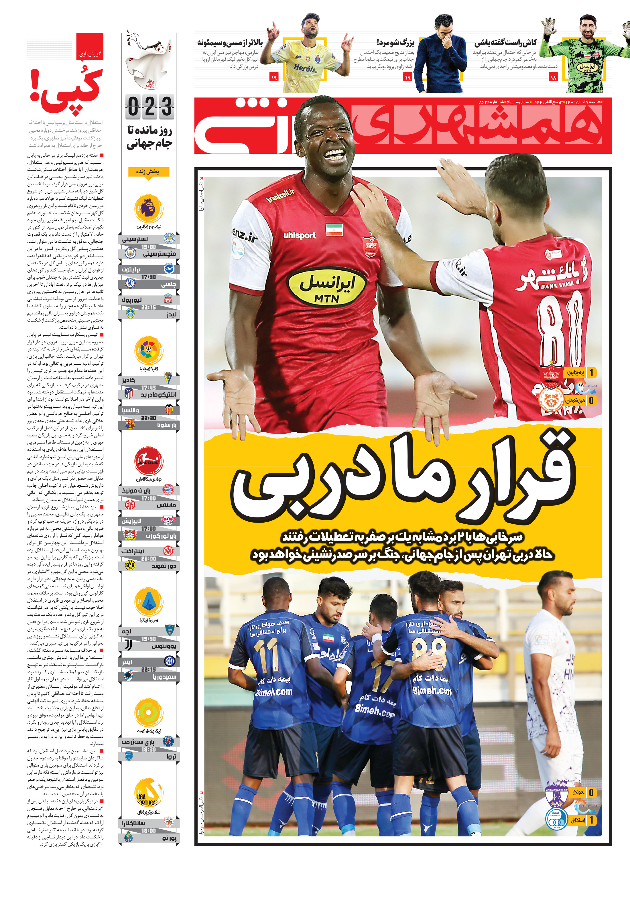 سرخابیها با 2برد مشابه یک بر صفر به تعطیلات رفتند حالا دربی تهران پس از جامجهانی، جنگ بر سر صدرنشینی خواهد بود