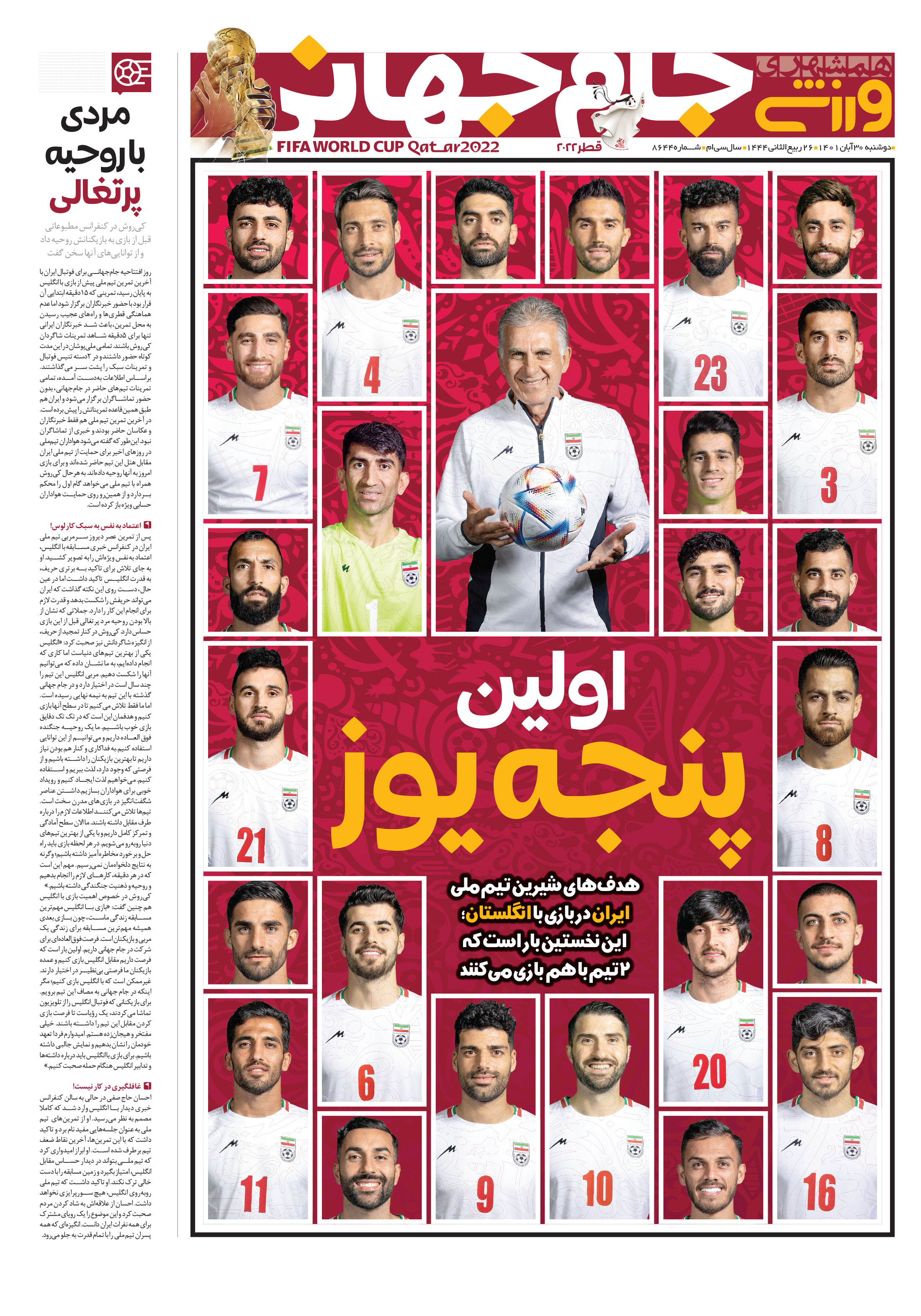 عصر امروز نخستین دیدار تیم ملی ایران در مرحله گروهی جامجهانی 2022 در برابر انگلستان برگزار خواهد شد؛ یک بازی بزرگ با حریفی مهم و قدرتمند که طبیعتا در تاریخ فوتبال کشور ماندگار خواهد بود.