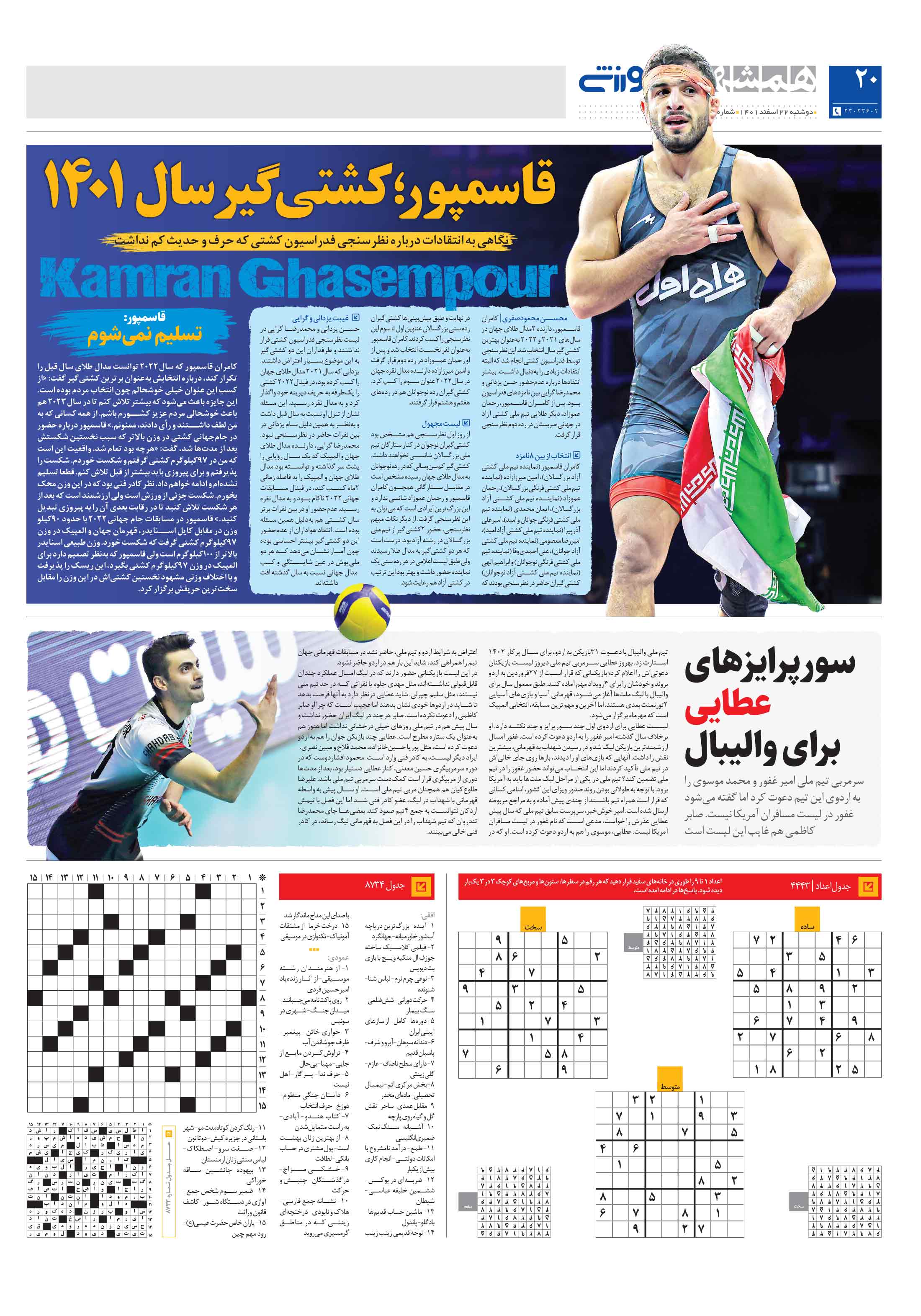 کامران قاسمپور، دارنده 2مدال طلای جهان در سالهای 2021 و 2022 بهعنوان بهترین کشتیگیر سال انتخاب شد.
