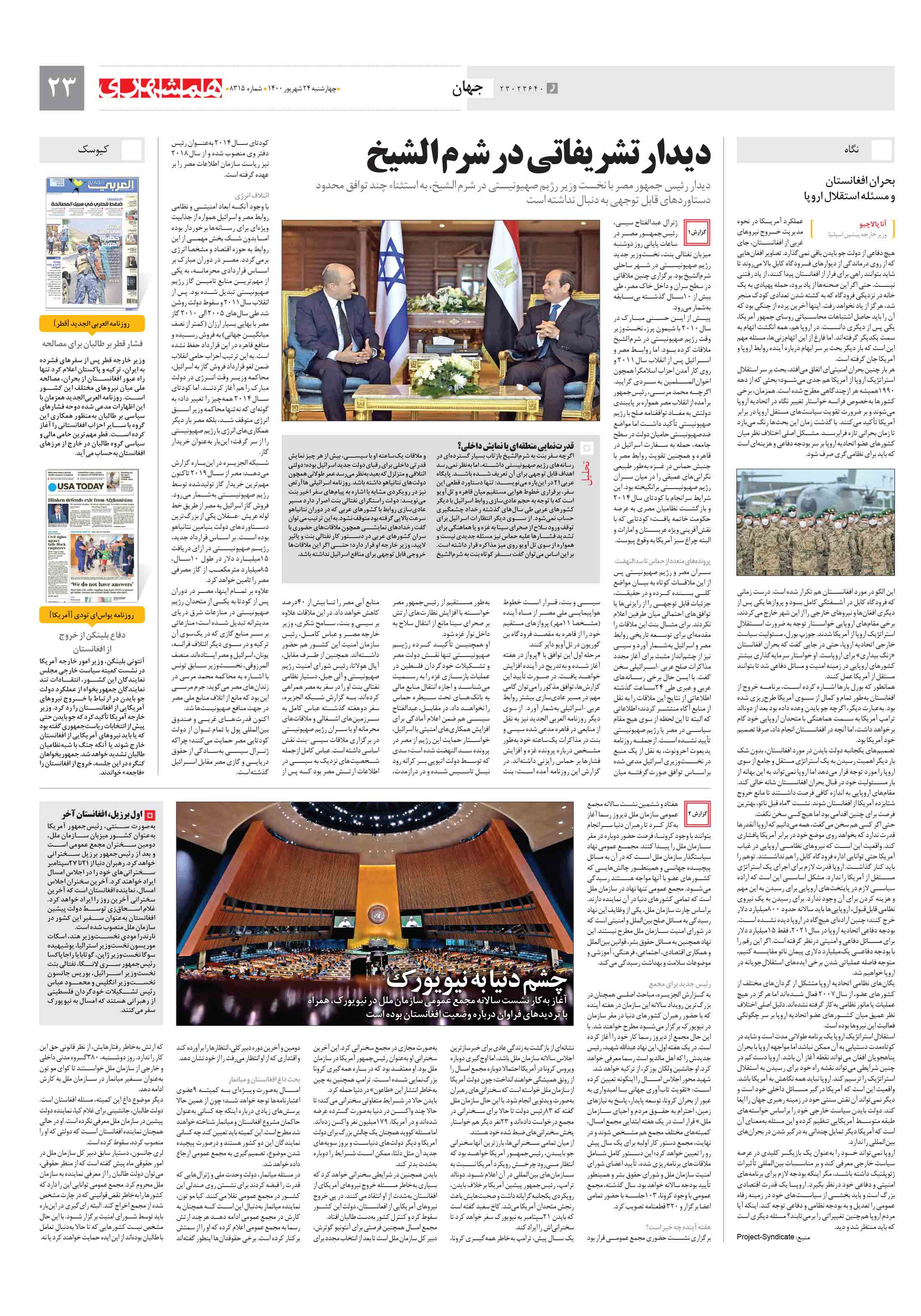 ژنرال عبدالفتاح سیسی، رئیسجمهور مصر در ساعات پایانی روز دوشنبه میزبان نفتالی بنت، نخستوزیر جدید رژیم صهیونیستی در شهر ساحلی شرمالشیخ بود. برگزاری چنین ملاقاتی در سطح سران و داخل خاک مصر، طی بیش از 10سال گذشته بیسابقه بهشمار میرود.