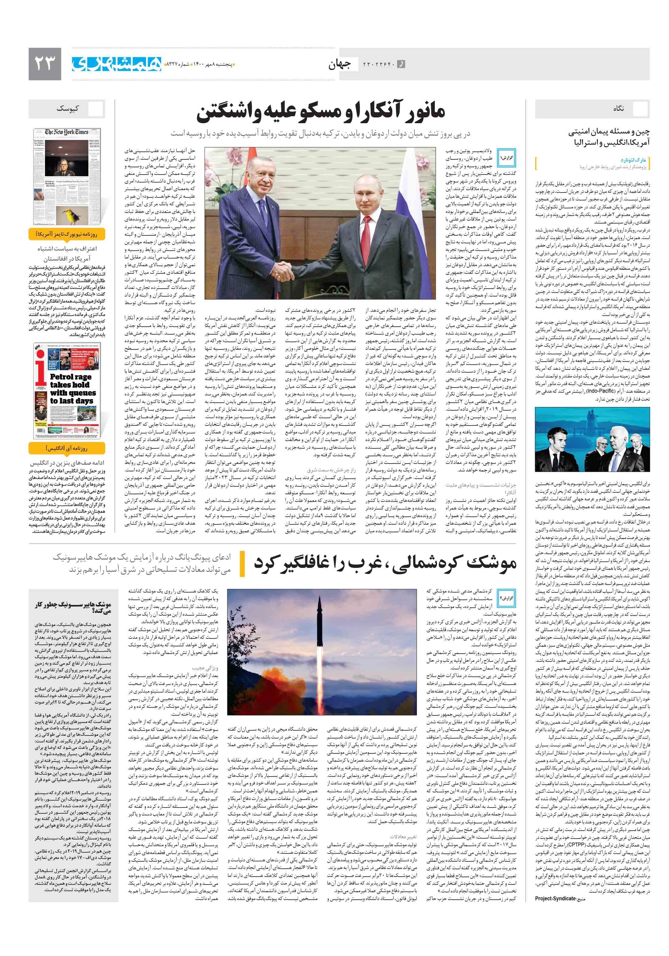 در پی بروز تنش میان دولت اردوغان و بایدن، ترکیه بهدنبال تقویت روابط آسیبدیده خود با روسیه است