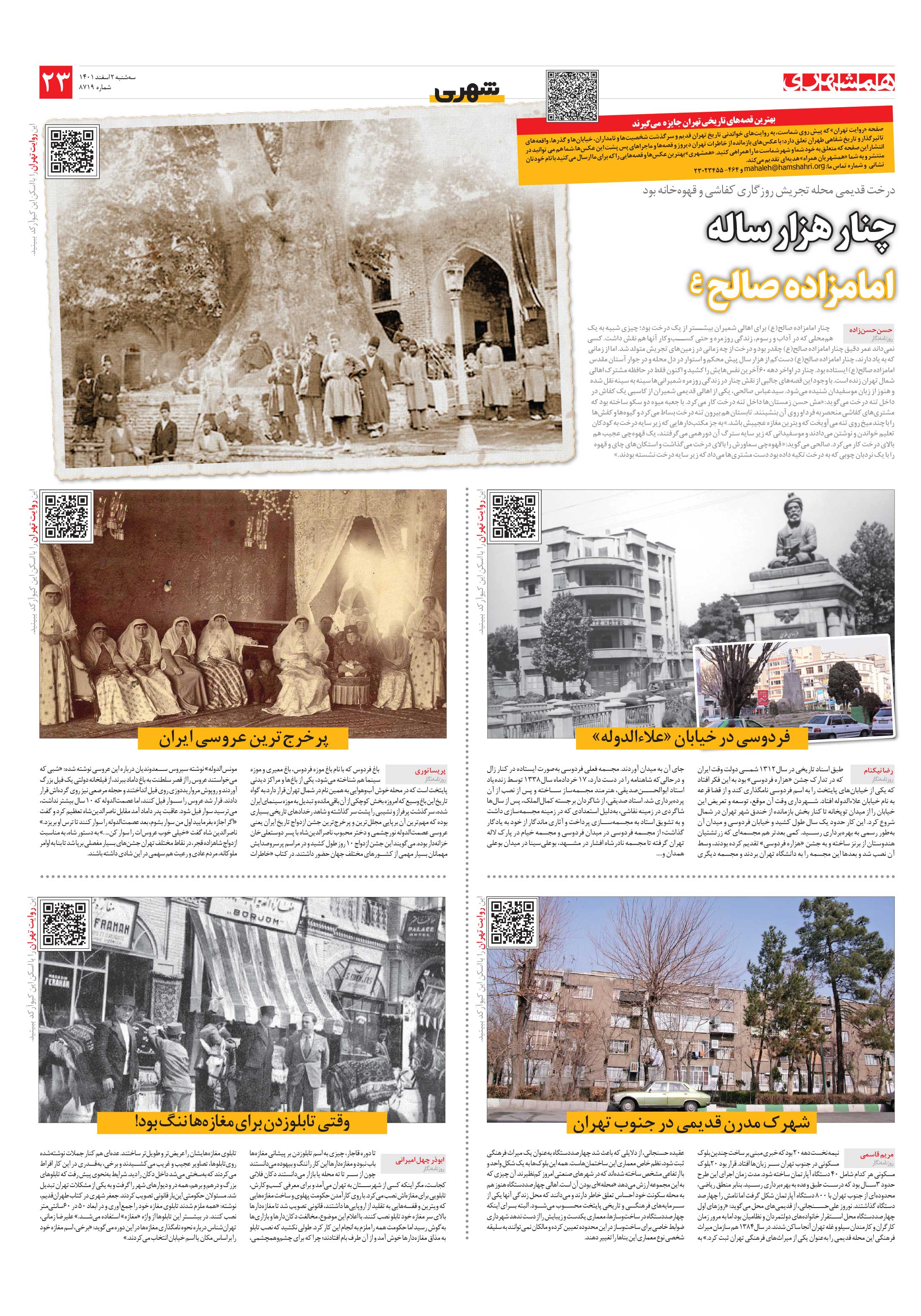 چنار امامزاده صالح ع برای اهالی شمیران بیشتر از یک درخت بود؛ چیزی شبیه به یک هممحلی که در آداب و رسوم، زندگی روزمره و حتی کسبوکار آنها هم نقش داشت.
