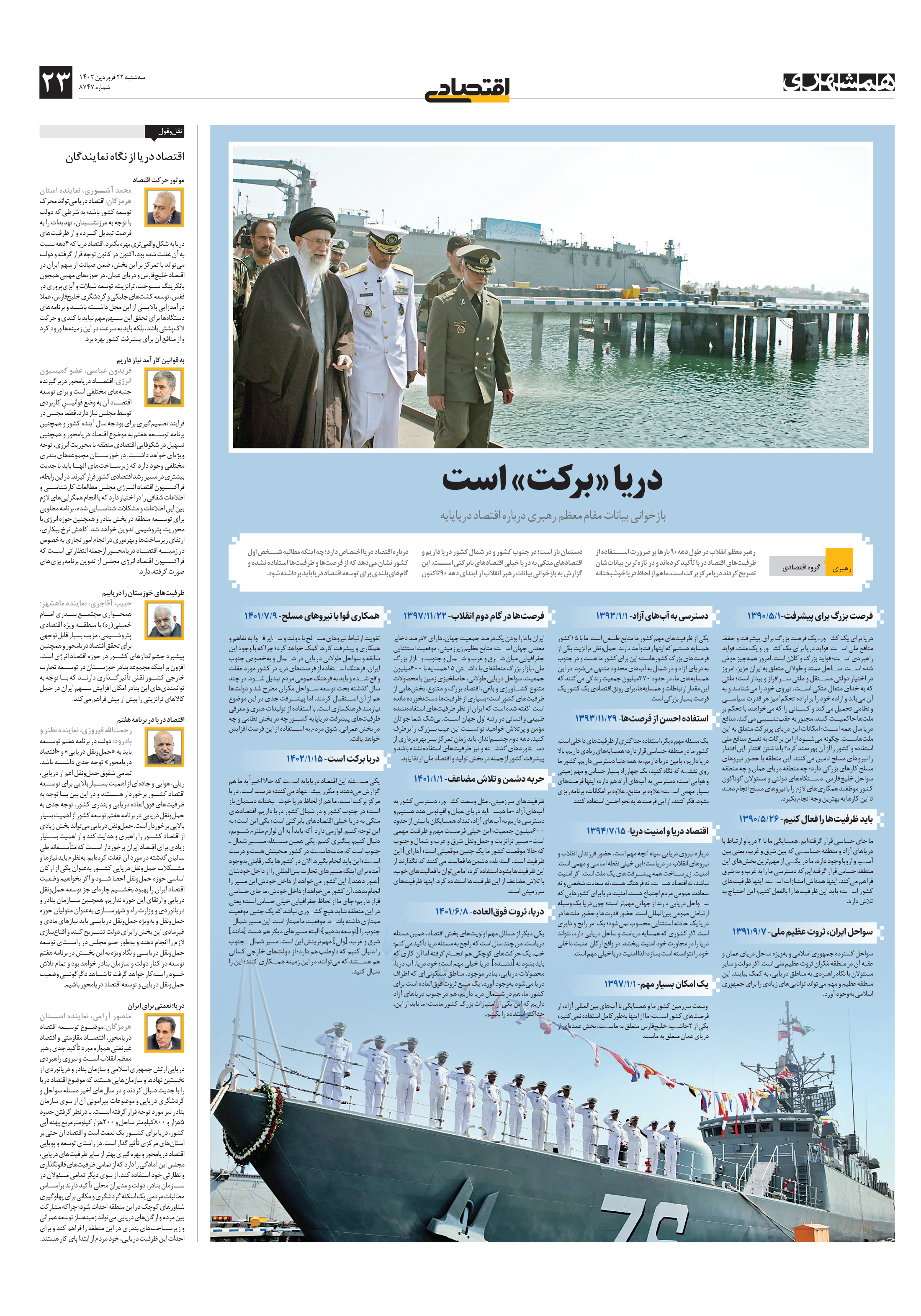 رهبر معظم انقلاب در طول دهه90 بارها بر ضرورت استفاده از ظرفیتهای اقتصاد دریا تأکید کردهاند و در تازهترین بیاناتشان تصریح کردند دریا مرکز برکت است.