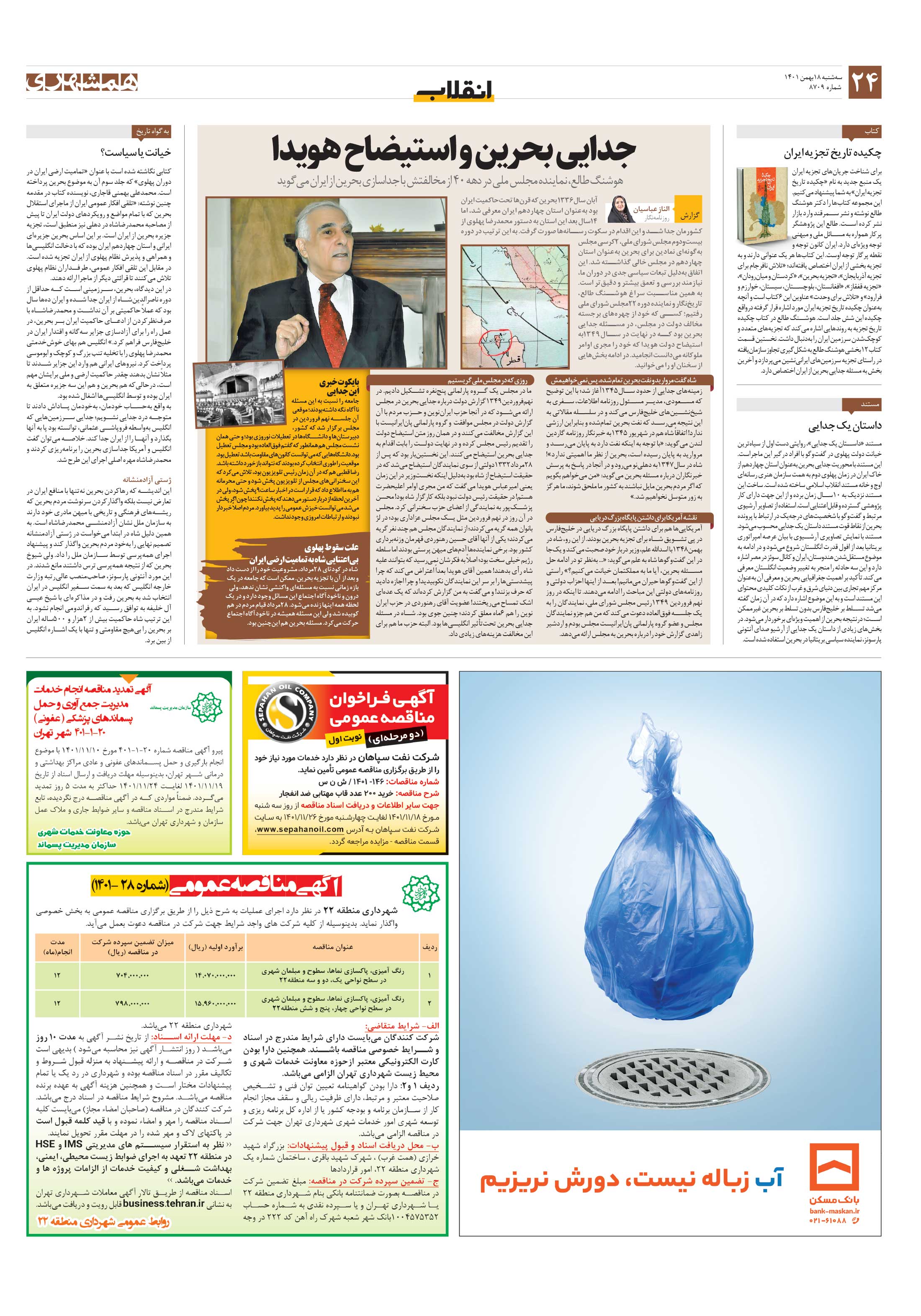 جدایی بحرین و استیضاح هویدا