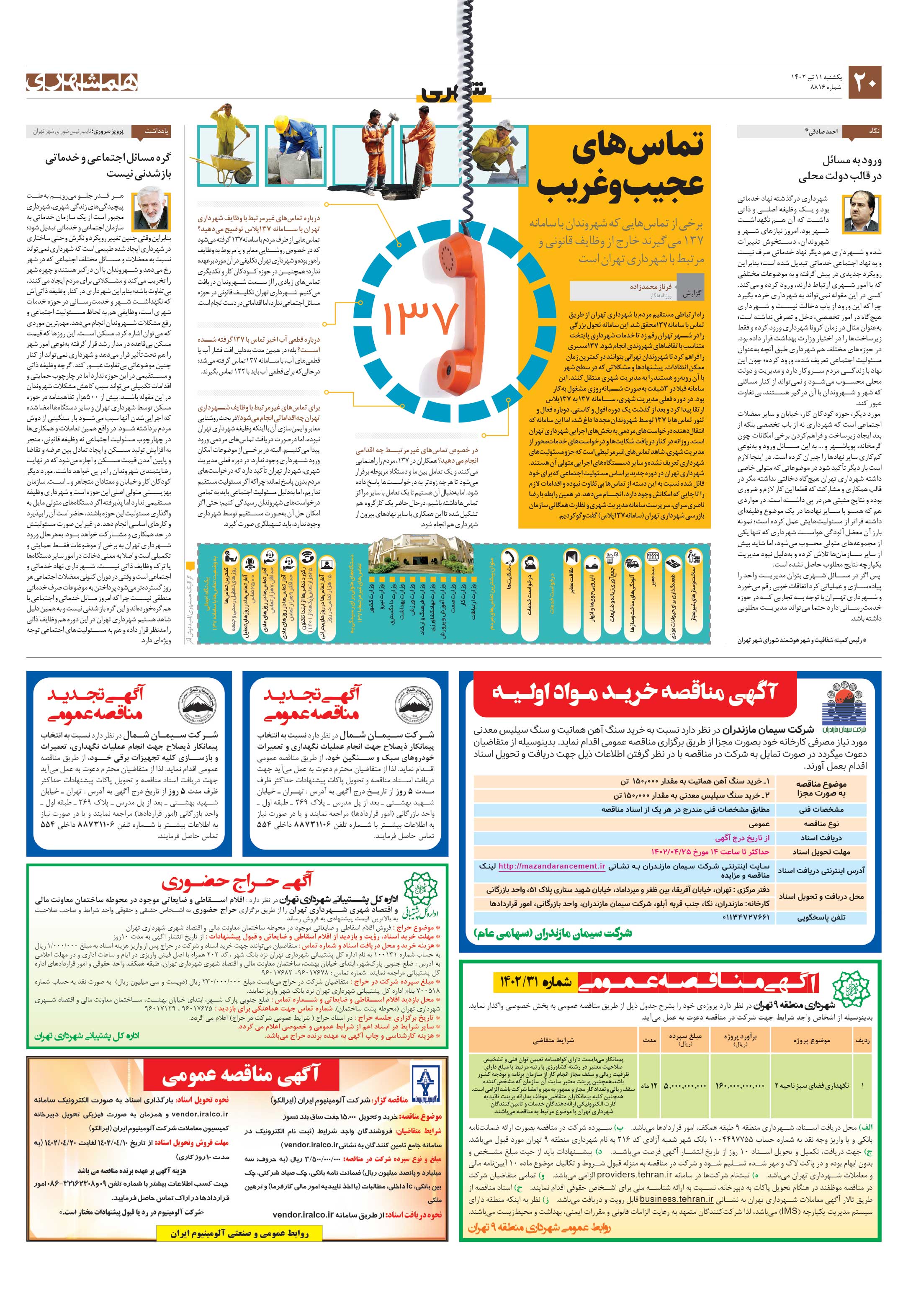 برخی از تماسهایی که شهروندان با سامانه 137 میگیرند خارج از وظایف قانونی و مرتبط با شهرداری تهران است