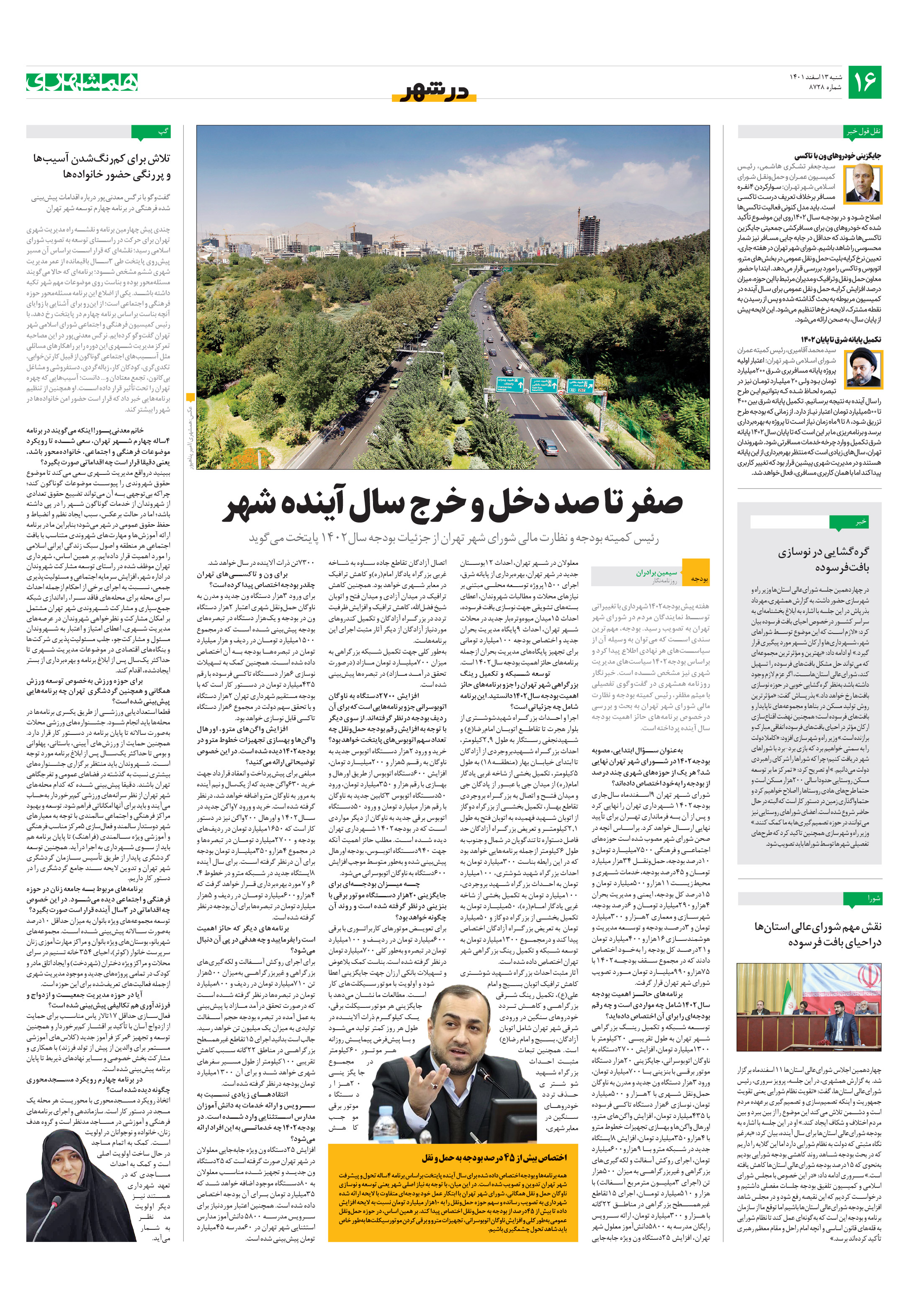 هفته پیش بودجه1402 شهرداری با تغییراتی توسط نمایندگان مردم در شورای شهر تهران به تصویب رسید. بودجه، مهمترین سندی است که میتوان به وسیله آن از سیاستهای هر نهادی اطلاع پیدا کرد و براساس بودجه1402 سیاستهای مدیریت شهری نیز مشخص شده است.