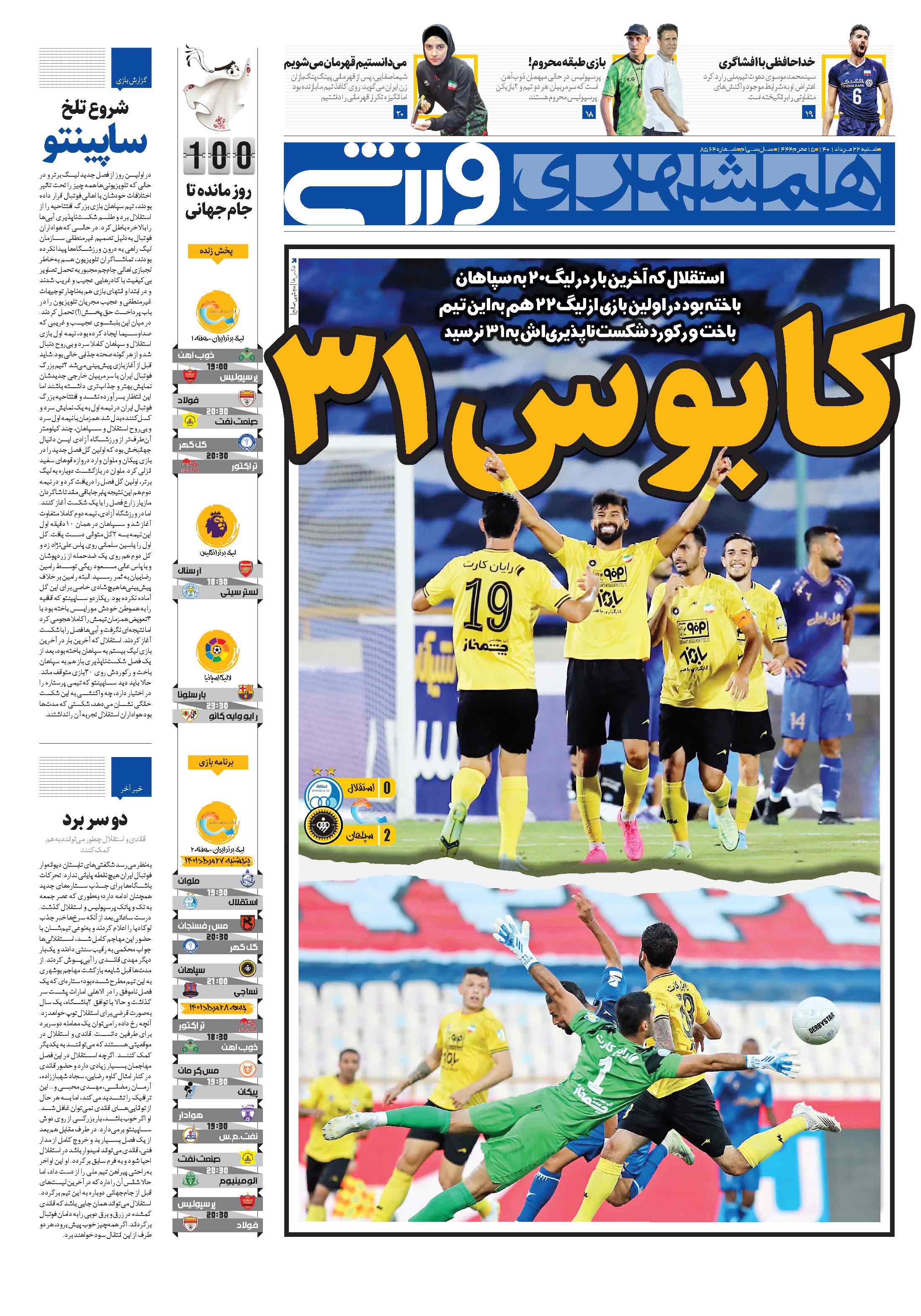 استقلال که آخرین بار در لیگ20 به سپاهان باخته بود در اولین بازی از لیگ22 هم به این تیم باخت و رکورد شکستناپذیریاش به 31 نرسید