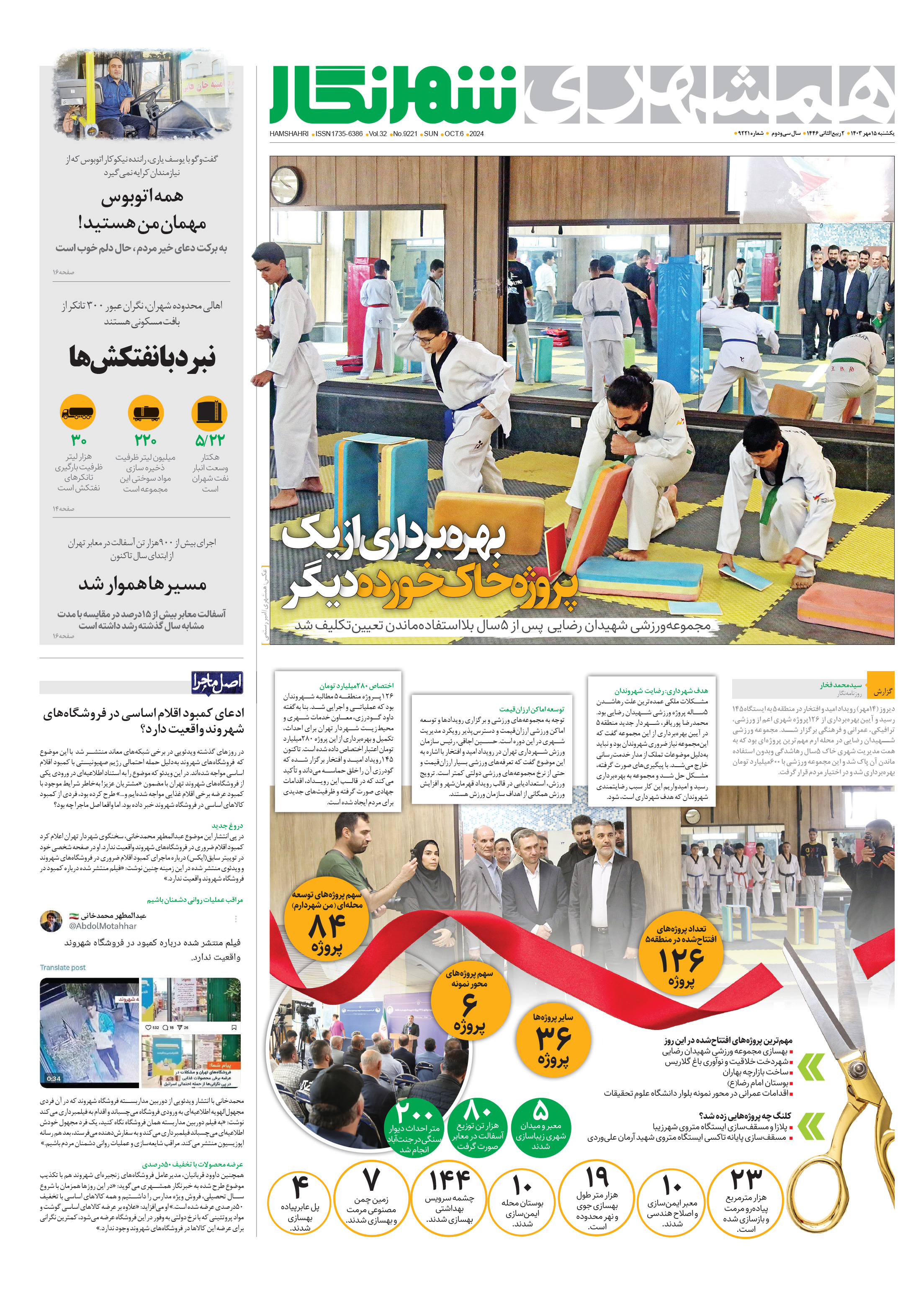 دیروز 14مهر رویداد امید و افتخار در منطقه5 به ایستگاه145 رسید و آیین بهرهبرداری از 126پروژه شهری اعم از ورزشی، ترافیکی، عمرانی و فرهنگی برگزار شد.