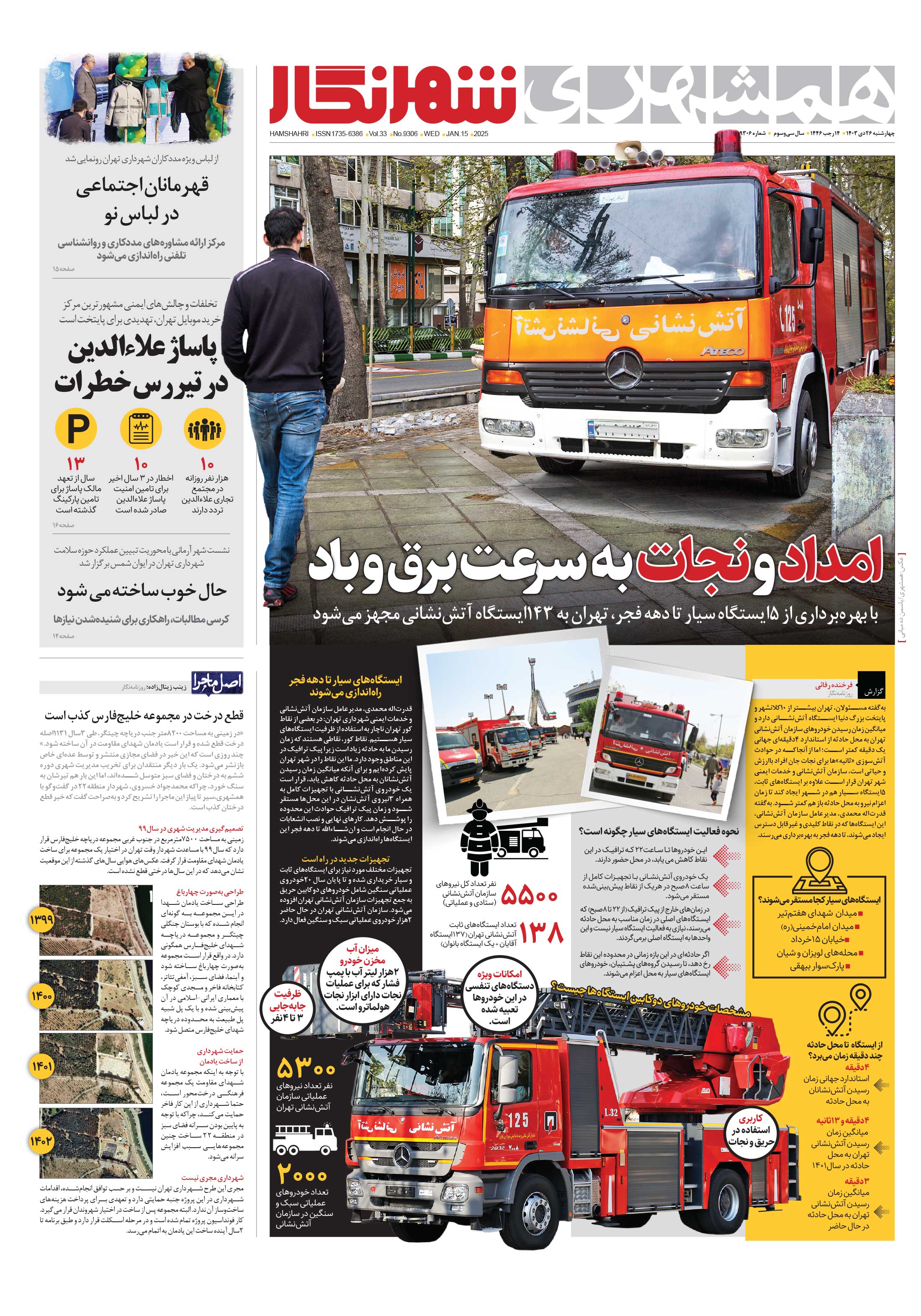 با بهرهبرداری از 5ایستگاه سیار تا دهه فجر، تهران به 143ایستگاه آتشنشانی مجهز میشود