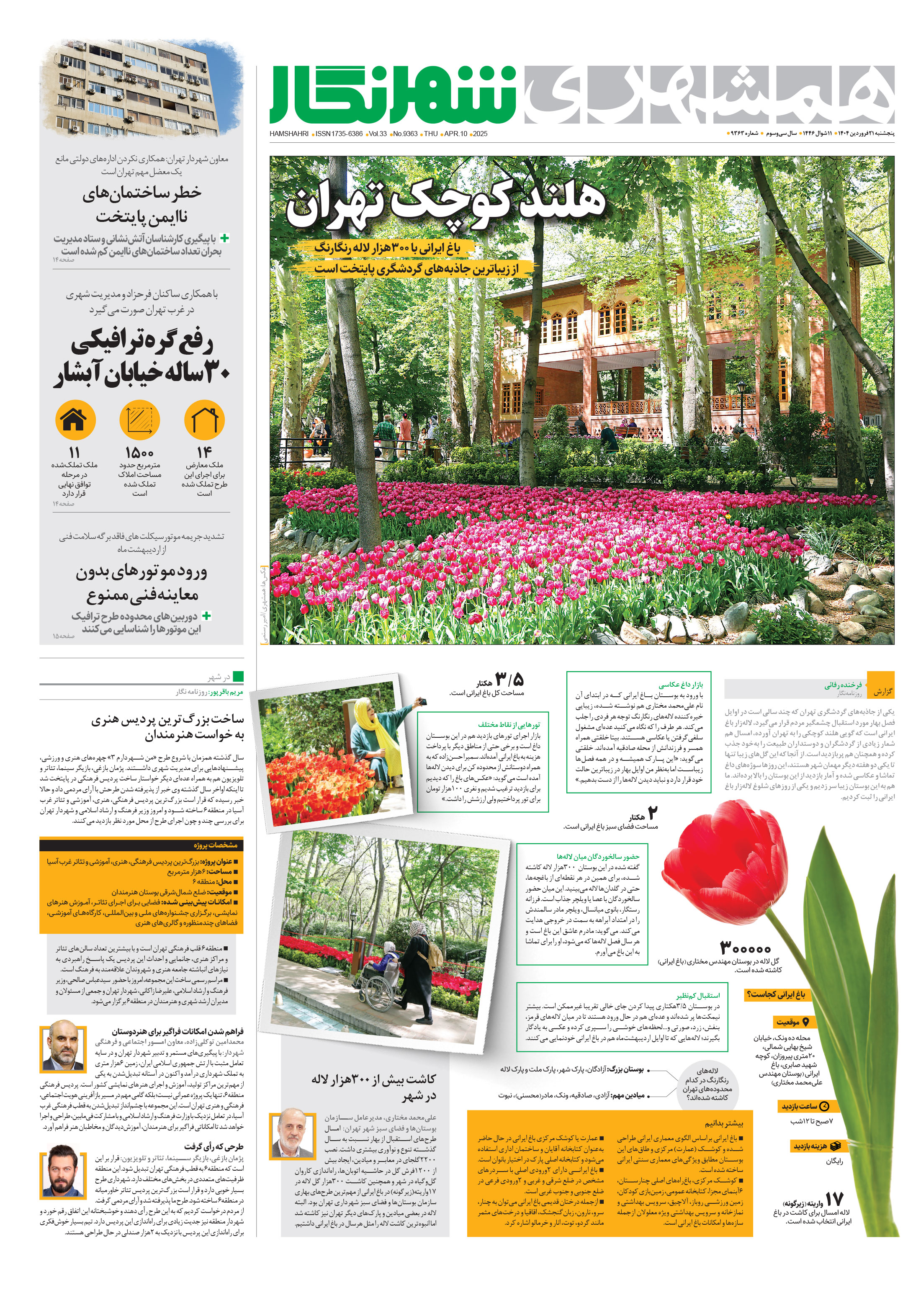باغ ایرانی با 300هزار لاله رنگارنگ از زیباترین جاذبههای گردشگری پایتخت است