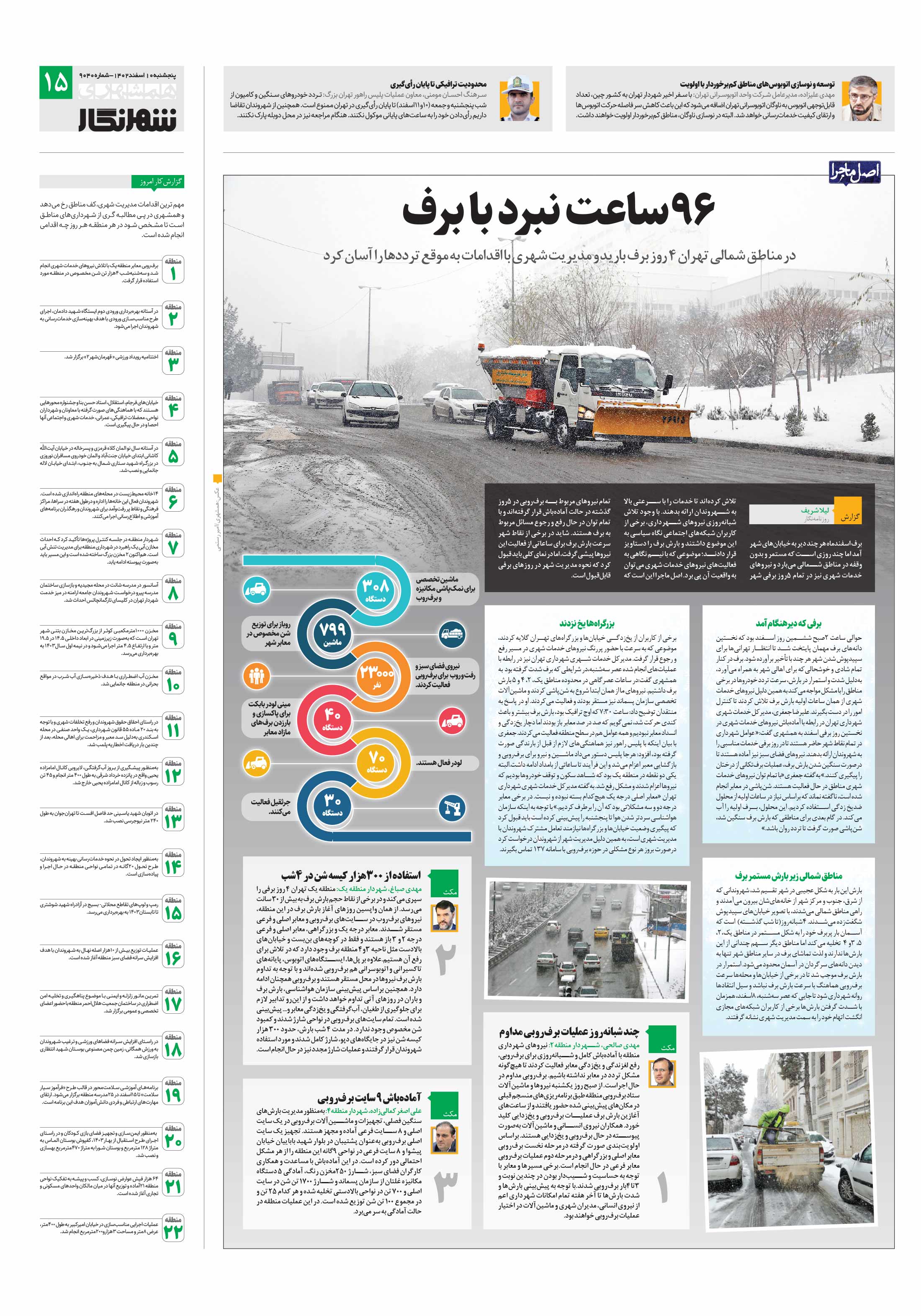 برف اسفندماه هر چند دیر به خیابانهای شهر آمد اما چند روزی است که مستمر و بدون وقفه در مناطق شمالی میبارد و نیروهای خدمات شهری نیز در تمام 5روز برفی شهر تلاش کردهاند تا خدمات را با سرعتی بالا به شهروندان ارائه بدهند.