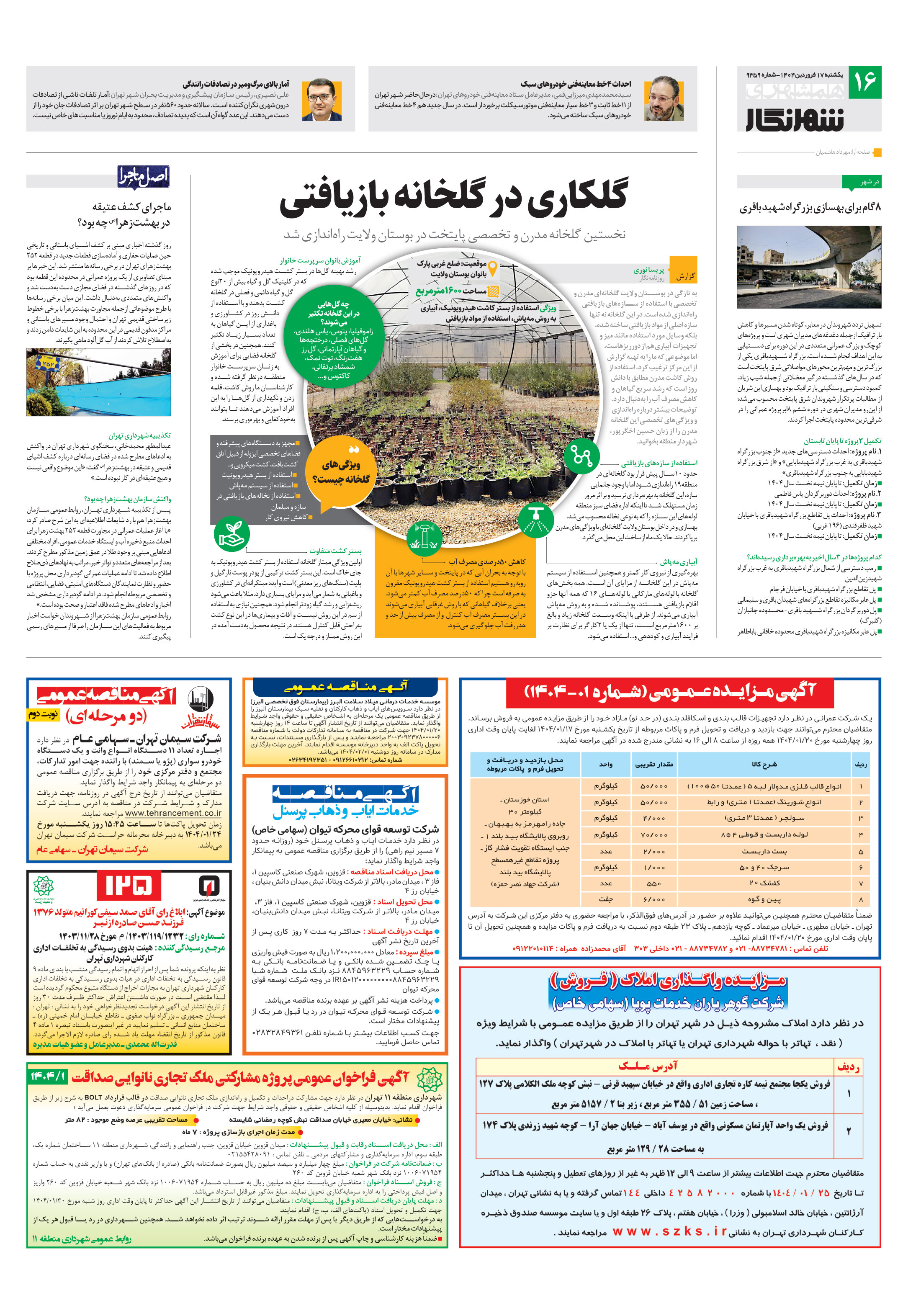نخستین گلخانه مدرن و تخصصی پایتخت در بوستان ولایت راهاندازی شد