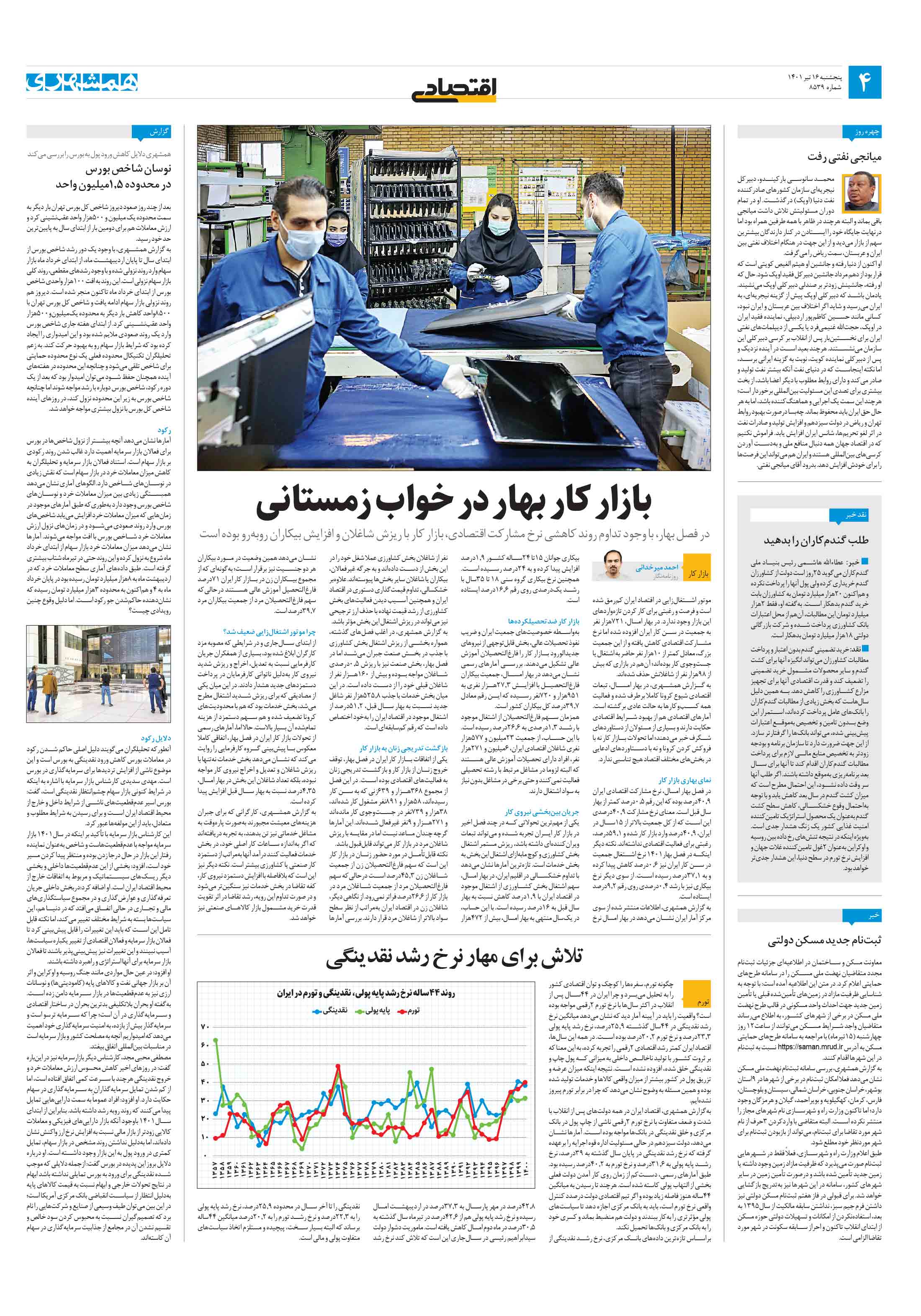 در فصل بهار، با وجود تداوم روند کاهشی نرخ مشارکت اقتصادی، بازار کار با ریزش شاغلان و افزایش بیکاران روبهرو بوده است