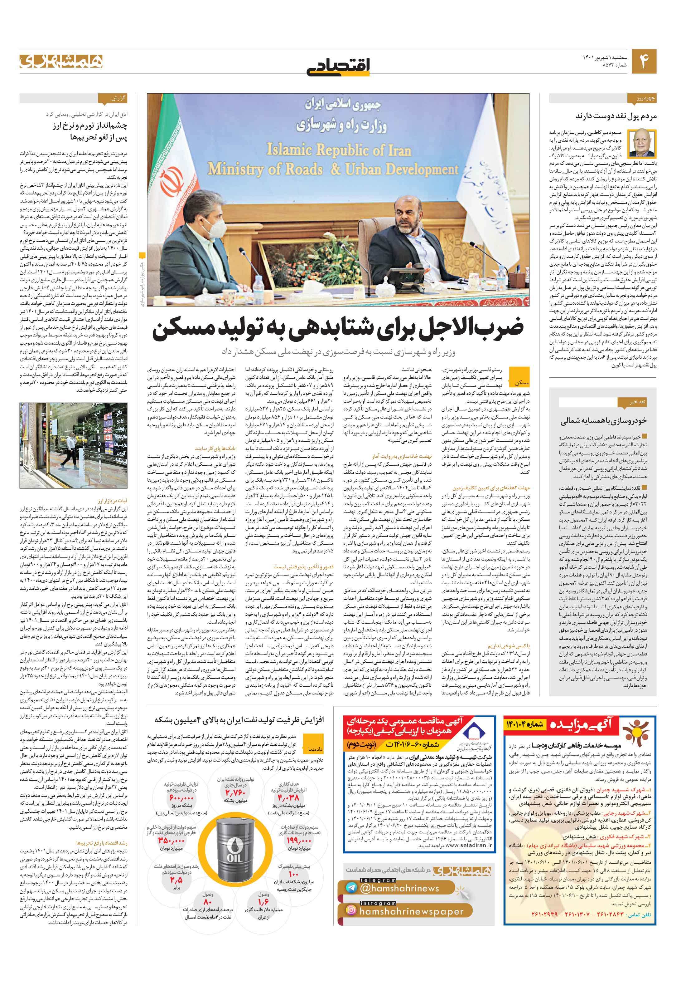 رستم قاسمی، وزیر راه و شهرسازی، برای تعیین تکلیف زمینهای نهضت ملی مسکن تا پایان شهریورماه مهلت داده و تأکید کرده قصور و تأخیر در اجرای این طرح پذیرفتنی نیست.