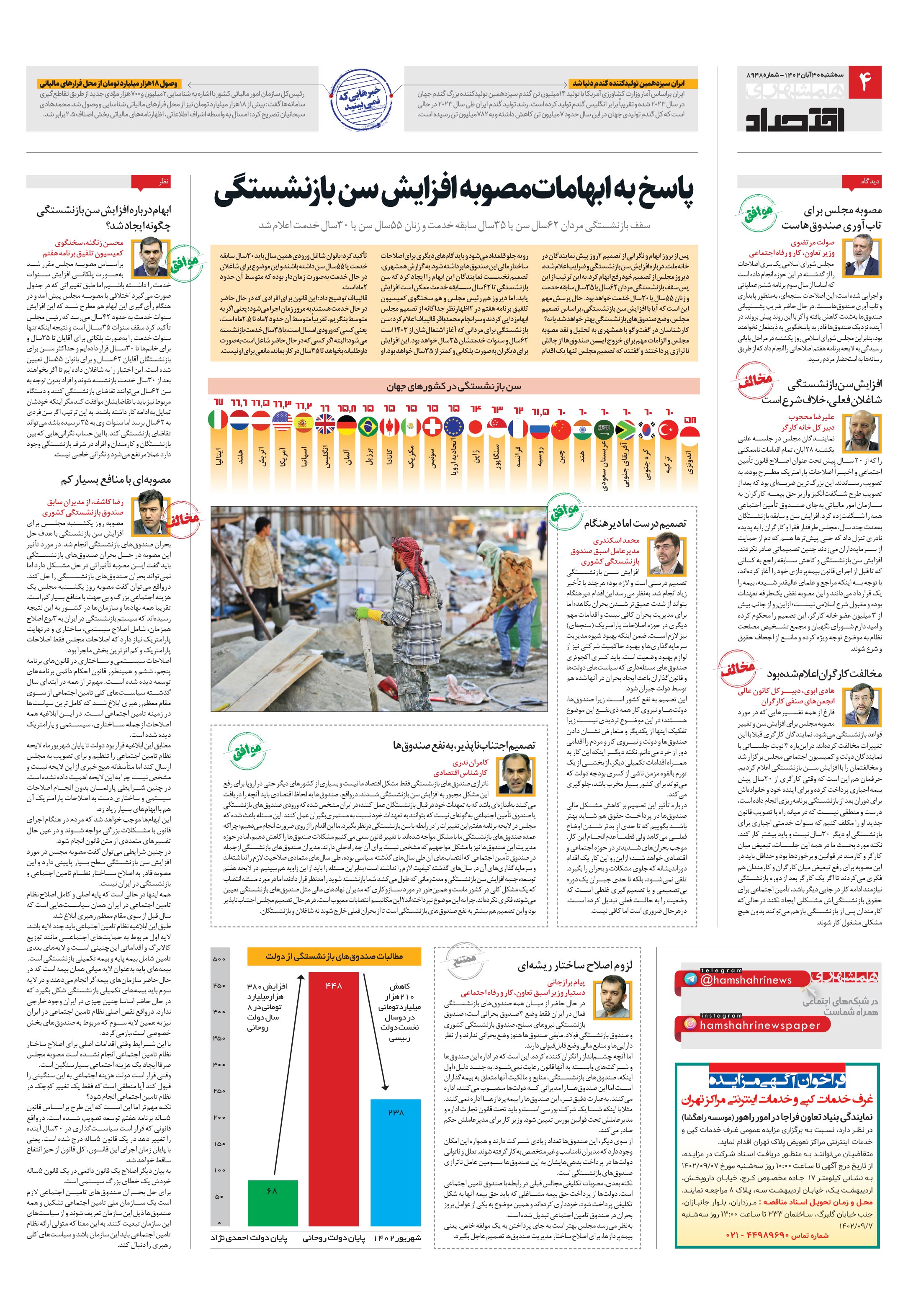 پس از بروز ابهام و نگرانی از تصمیم 2روز پیش نمایندگان در خانه ملت، درباره افزایش سن بازنشستگی و ضرایب اعلام شده، دیروز مجلس از تصمیم خود رفع ابهام کرد.