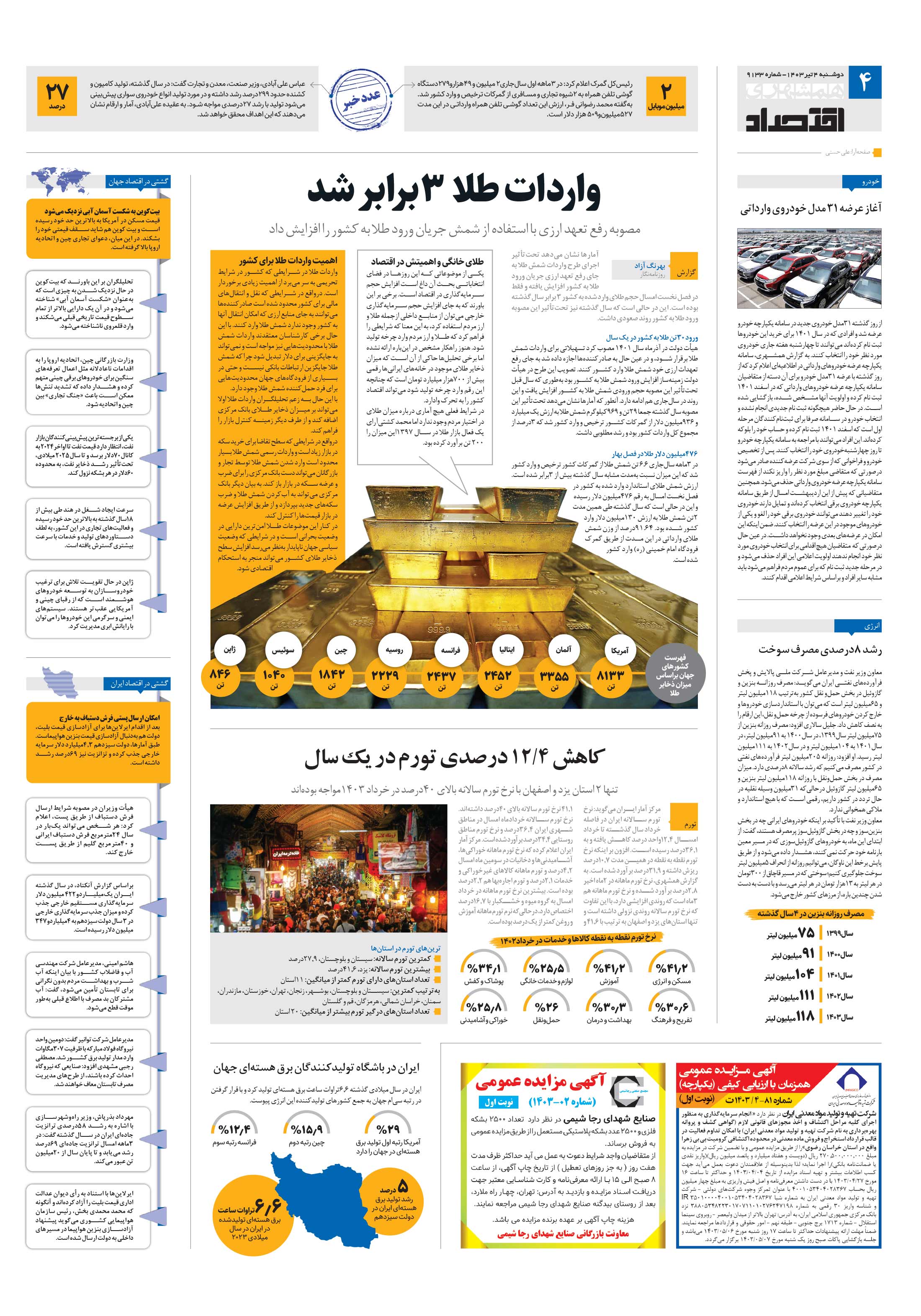 تنها 2 استان یزد و اصفهان با نرخ تورم سالانه بالای 40درصد در خرداد 1403مواجه بودهاند