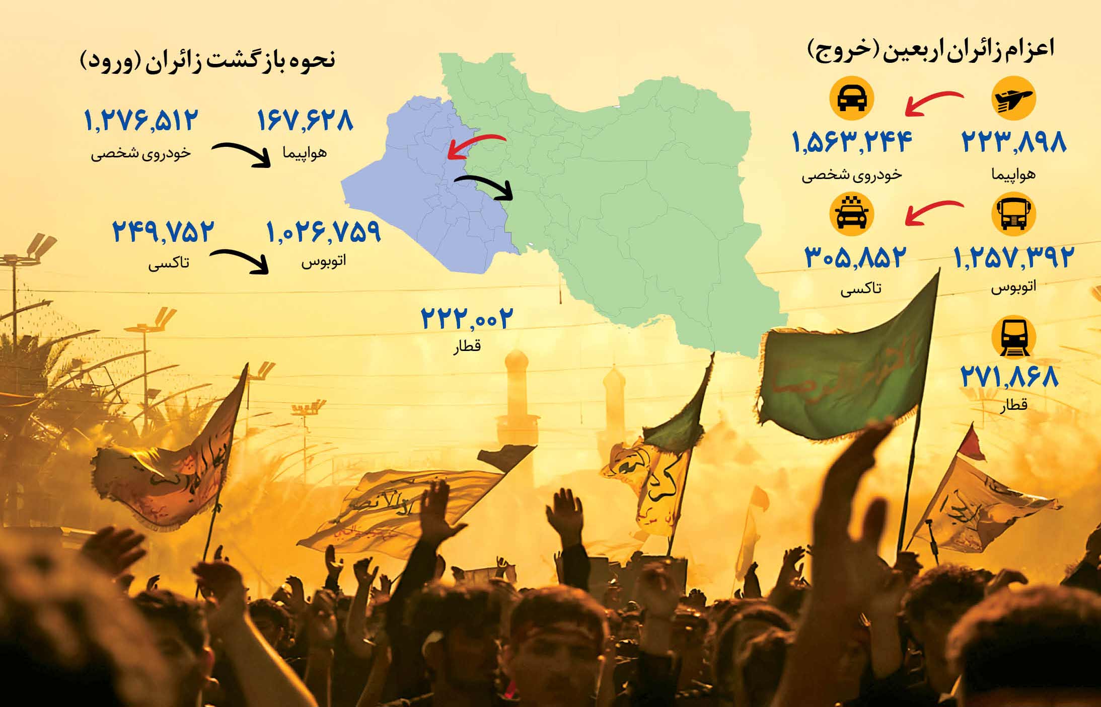 براساس آخرین آمارهای ثبت شده در گذرگاههای مرزی، تا شامگاه چهارم مردادماه، بیش از 3.6میلیون زائر ایرانی برای حضور در مراسم اربعین حسینی وارد عراق شده و اکثر آنها به کشور بازگشتهاند.