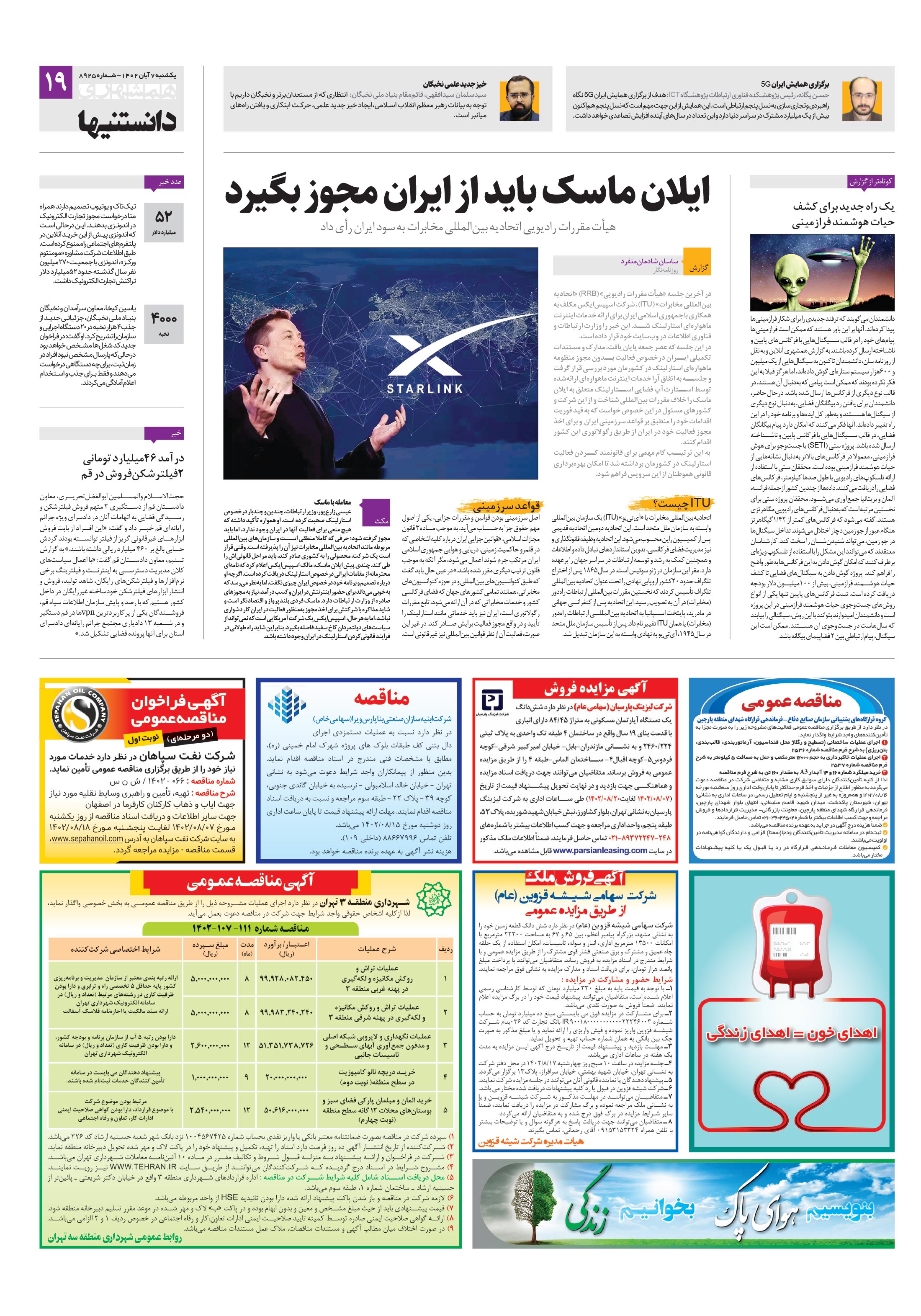 در آخرین جلسه «هیأت مقررات رادیویی» RRB «اتحادیه بینالمللی مخابرات» ITU، شرکت اسپیسایکس مکلف به همکاری با جمهوری اسلامی ایران برای ارائه خدمات اینترنت ماهوارهای استارلینک شد. این خبر را وزارت ارتباطات و فناوری اطلاعات در وبسایت خود قرار داده است.