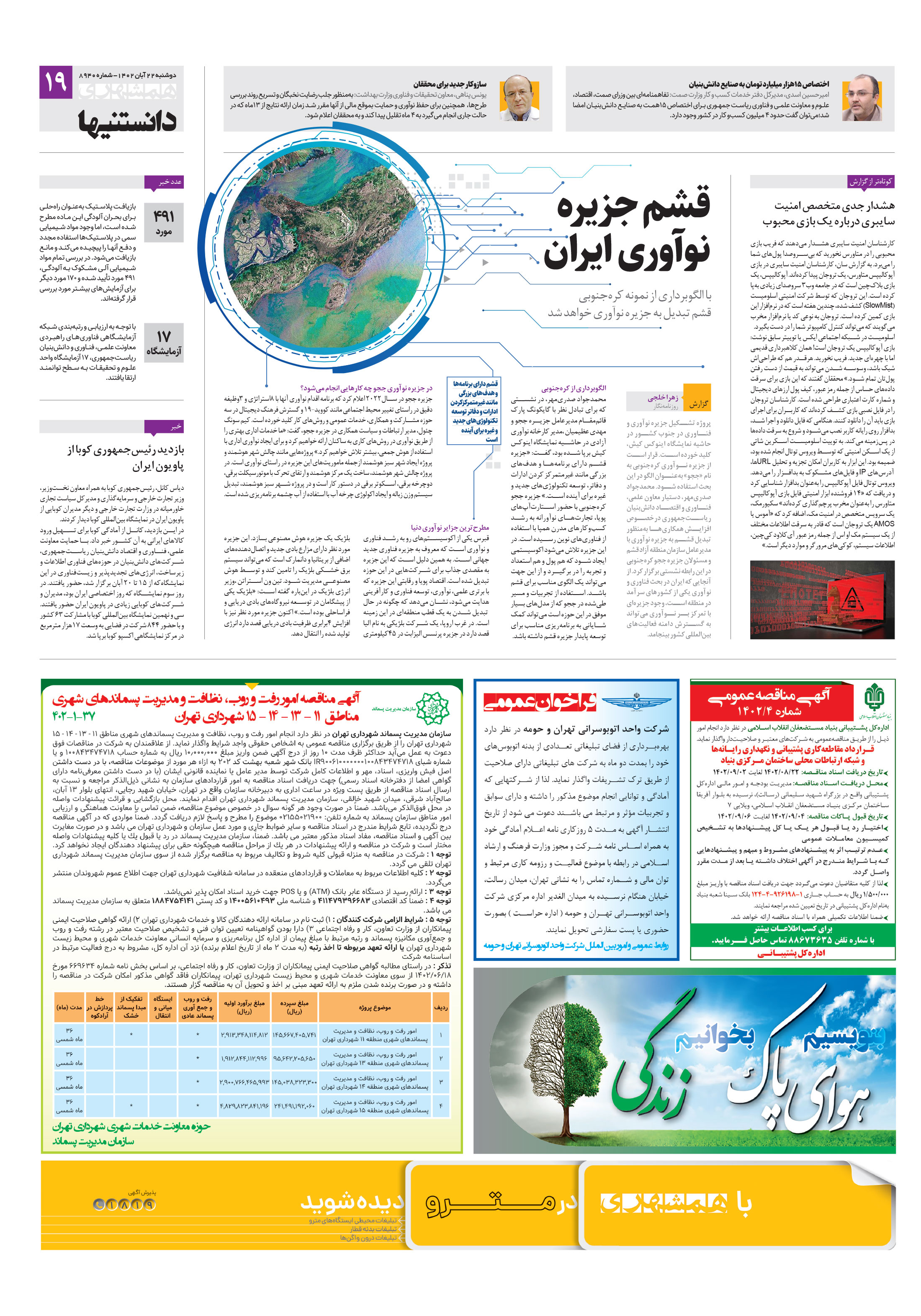 پروژه تشکیل جزیره نوآوری و فناوری در جنوب کشور در حاشیه نمایشگاه اینوکس کیش، کلید خورده است. قرار است از جزیره نوآوری کرهجنوبی به نام «ججو» بهعنوان الگو در این بحث استفاده شود.
