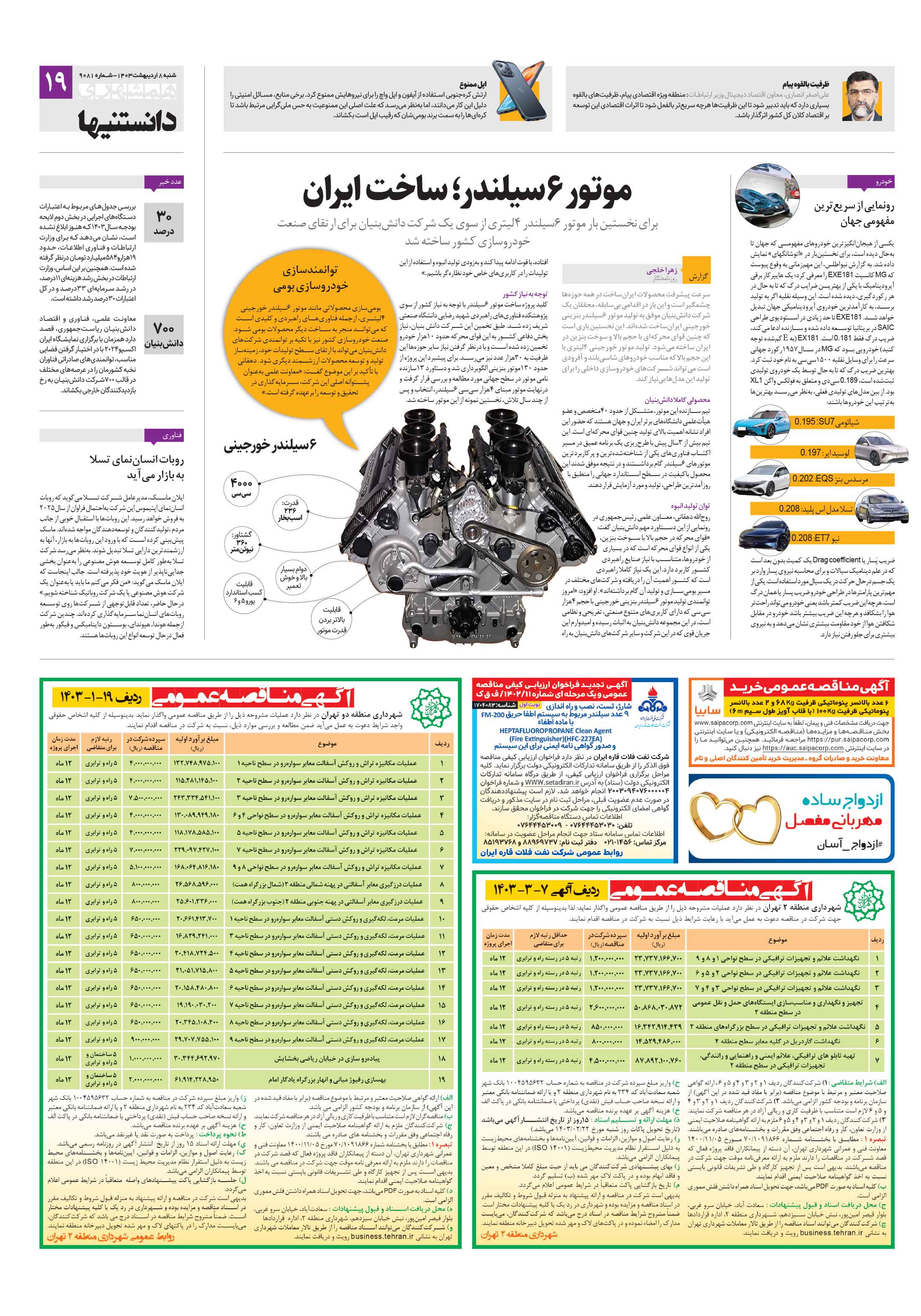 سرعت پیشرفت محصولات ایرانساخت در همه حوزهها چشمگیر است و این بار در اقدامی بیسابقه، محققان یک شرکت دانشبنیان موفق به تولید موتور 6سیلندر بنزینی خورجینی ایرانساخت شدهاند.