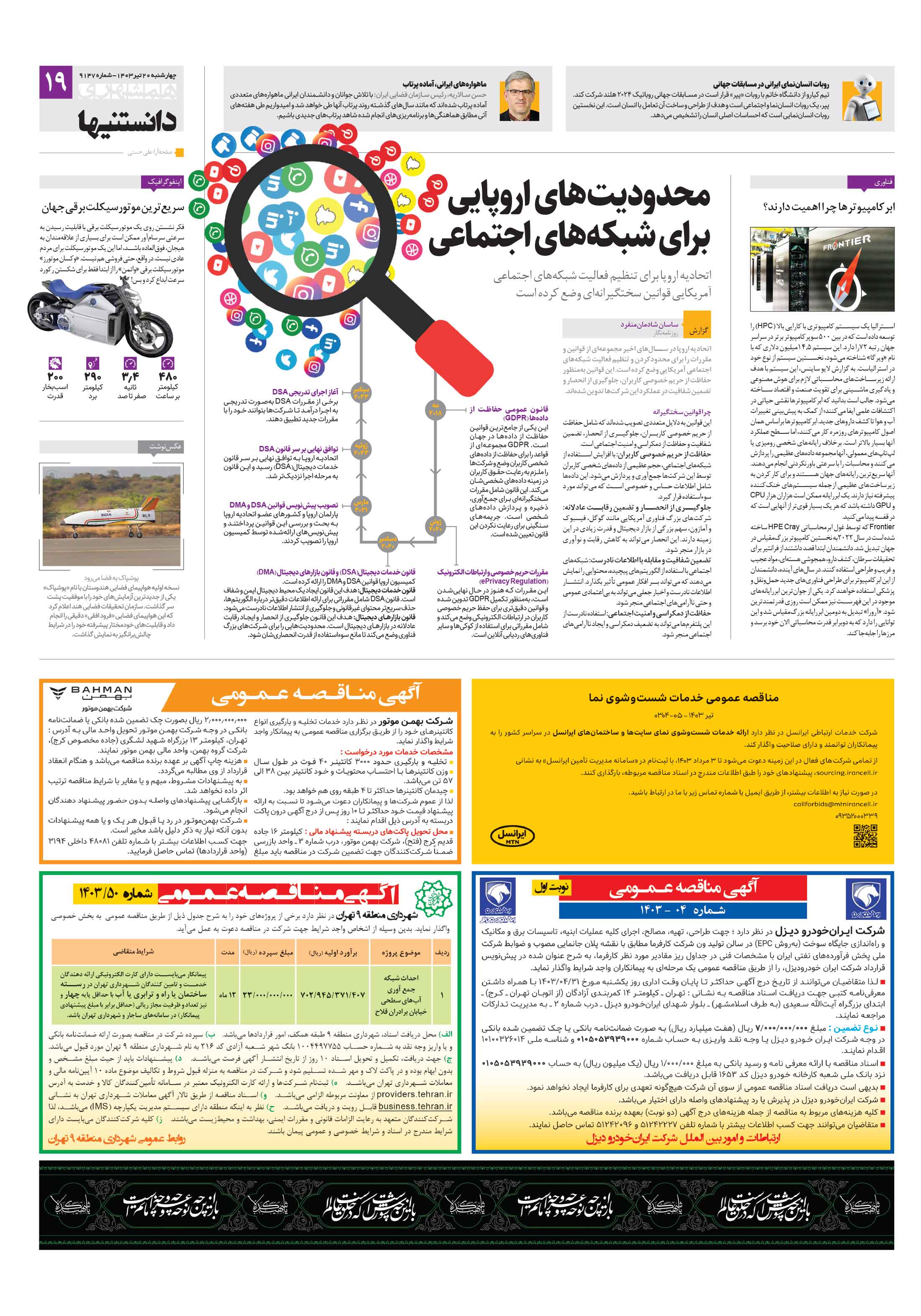 چهار شنبه 20 تیر 1403