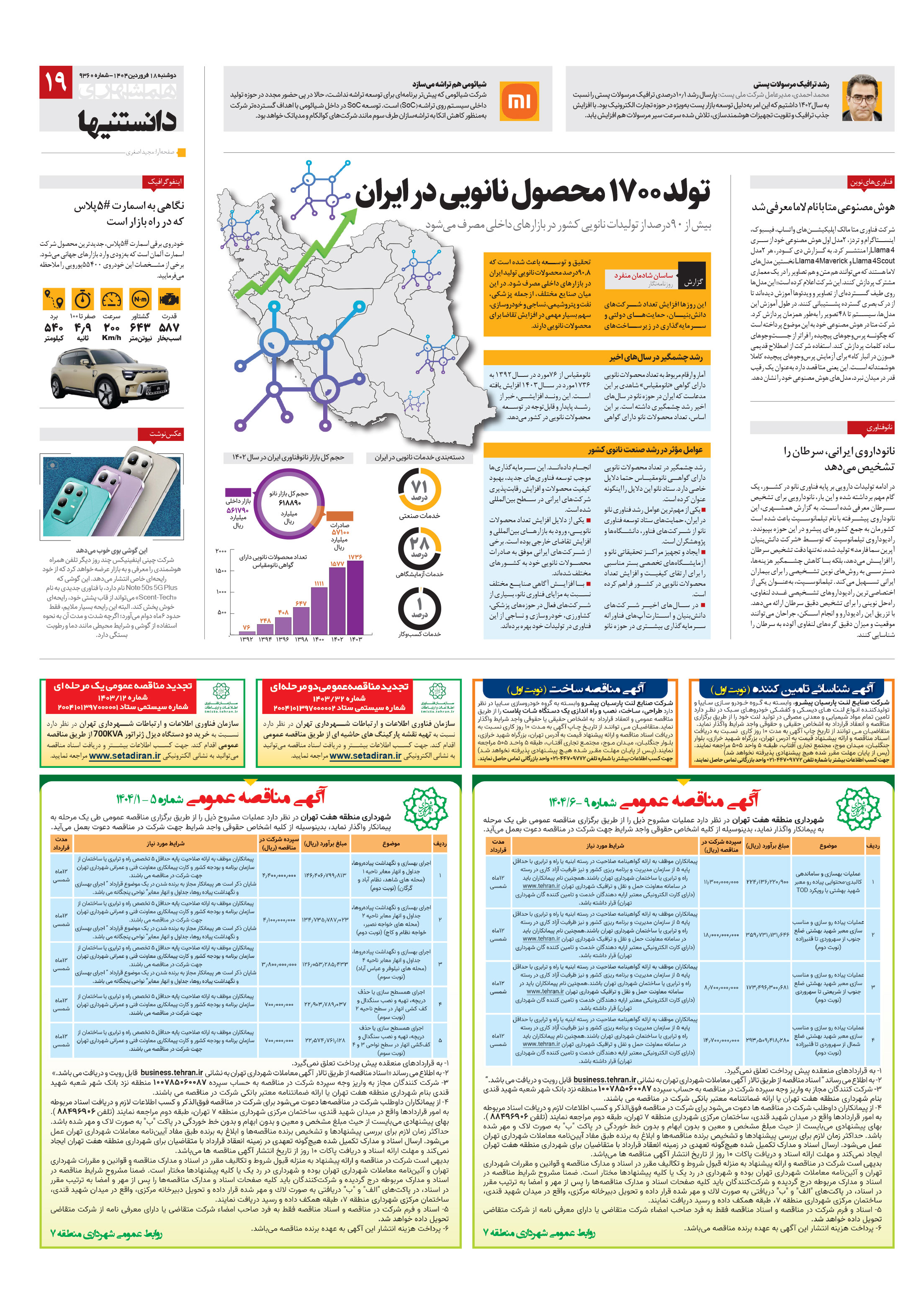 این روزها افزایش تعداد شرکتهای دانشبنیان، حمایتهای دولتی و سرمایهگذاری در زیرساختهای تحقیق و توسعه باعث شده است که 90.8درصد محصولات نانویی تولید ایران در بازارهای داخلی مصرف شود.