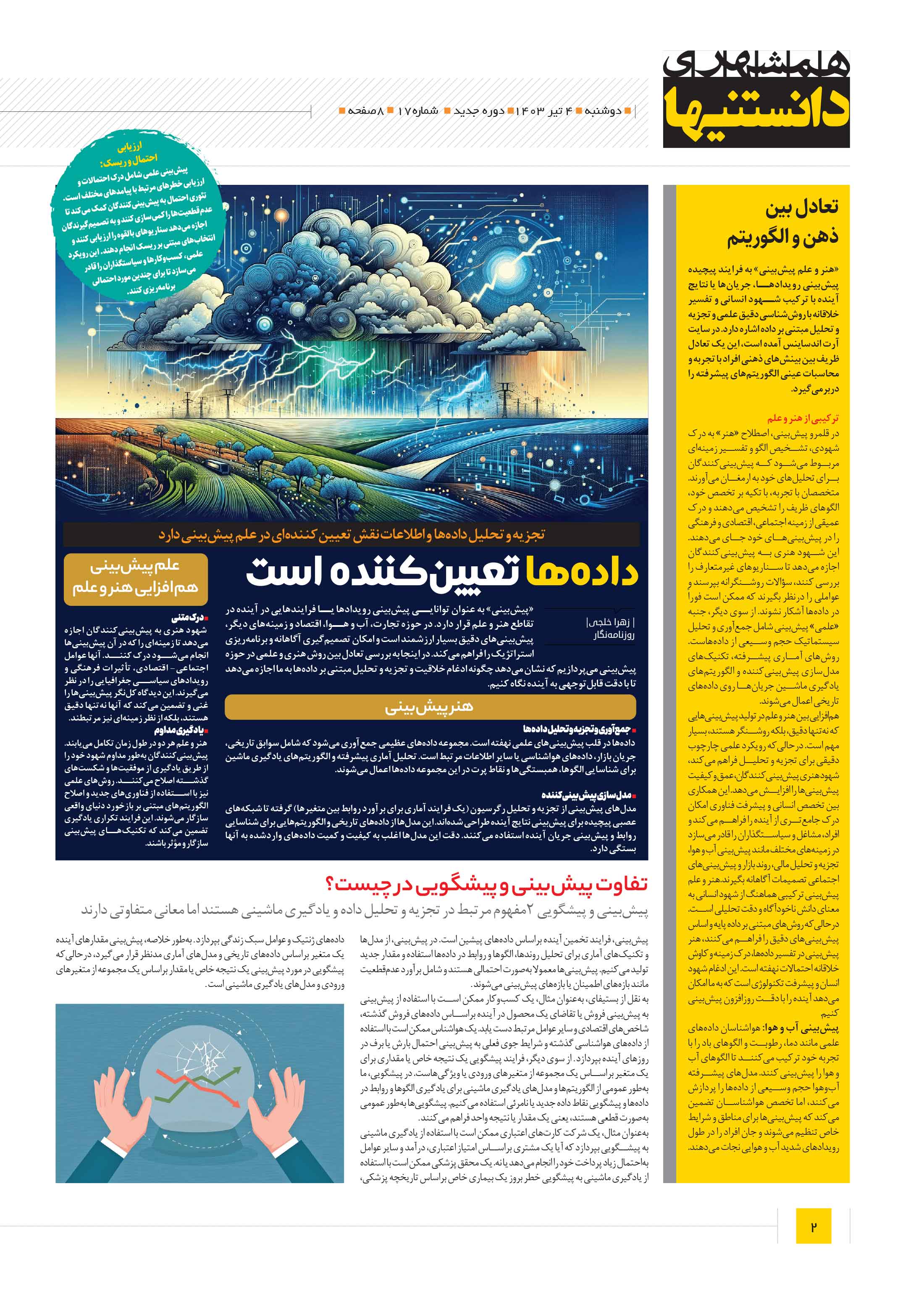 «پیشبینی» به عنوان توانایی پیشبینی رویدادها یا فرایندهایی در آینده در تقاطع هنر و علم قرار دارد.