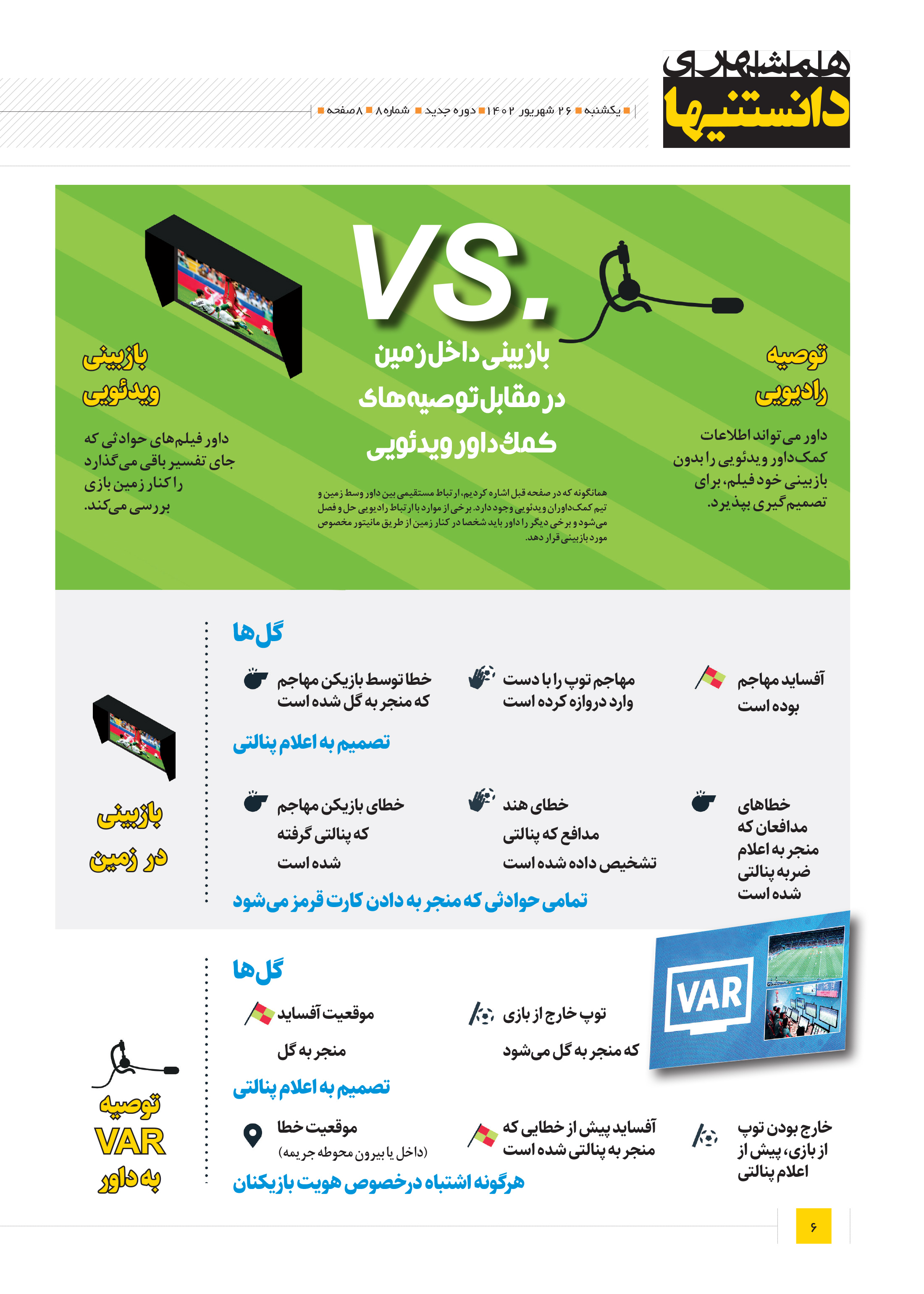 همانگونه که در صفحه قبل اشاره کردیم، ارتباط مستقیمی بین داور وسط زمین و تیم کمکداوران ویدئویی وجود دارد.